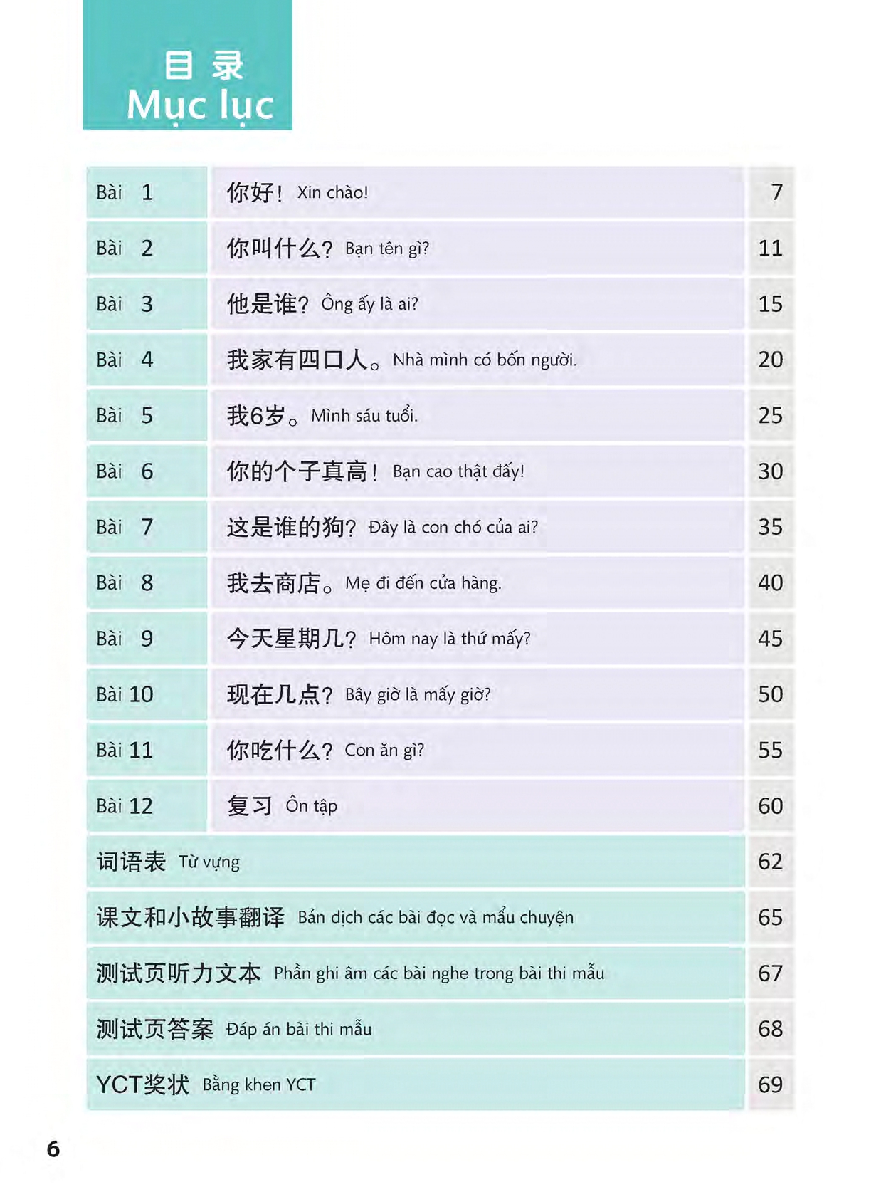 Nội dung sách: Sách YCT là sách tiếng hoa thiếu nhi bản quyền chuẩn mẫu chương trình dạy cho các bé từ vở lòng bằng những bài học đơn giản nhất.