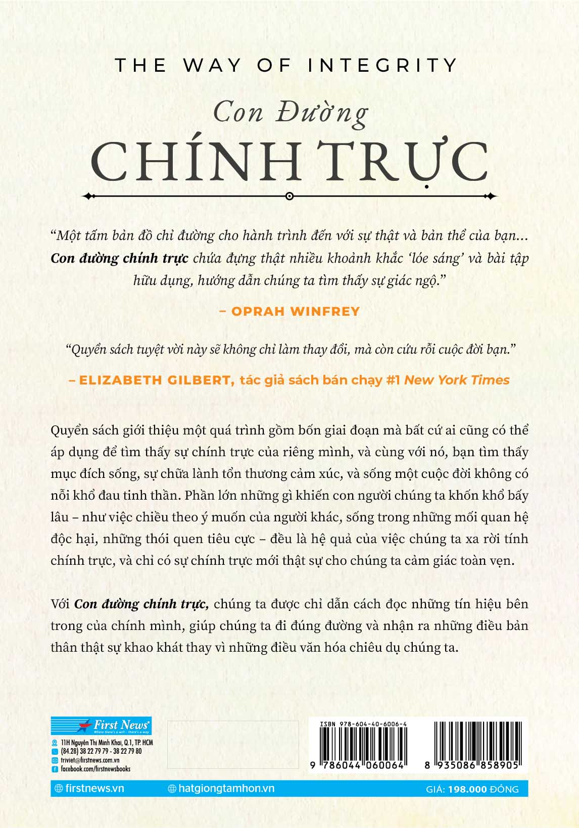 Trong một thế giới đầy rẫy áp lực và những tiếng nói hỗn loạn từ bên ngoài, việc giữ được sự chính trực và toàn vẹn của chính mình không hề dễ dàng. Hiểu được thử thách đó, – một nhà xã hội học, diễn giả và là nhà khai vấn có uy tín – đã mang đến cuốn sách “” (tựa gốc: The Way of Integrity), như một lời mời gọi sâu sắc và chân thành, khuyến khích mỗi người quay trở về với bản thân.