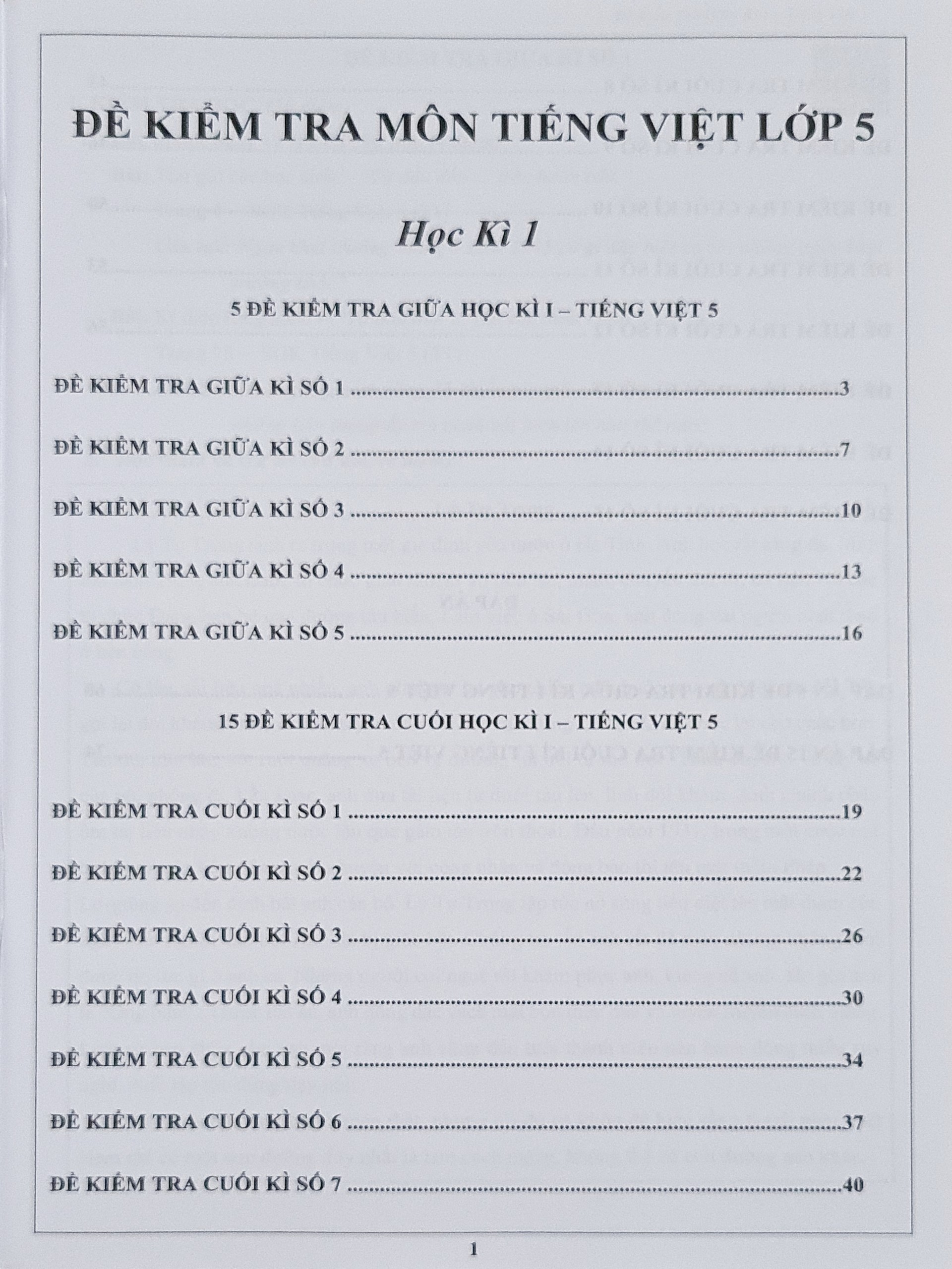 Mua tại TiktokGIỚI THIỆU SÁCH Đề kiểm tra Tiếng Việt lớp 5 ( học kì 1) Dạng bài tập bám sát cấu trúc để thi giúp học sinh ôn tập và rèn luyện để tự tin khi bước vào kì thi. Dòng kẻ ô ly giúp học sinh viết và làm bài thuận tiện. Hỗ trợ phụ huynh tham gia nhóm để giải đáp thắc mắc về bài tập