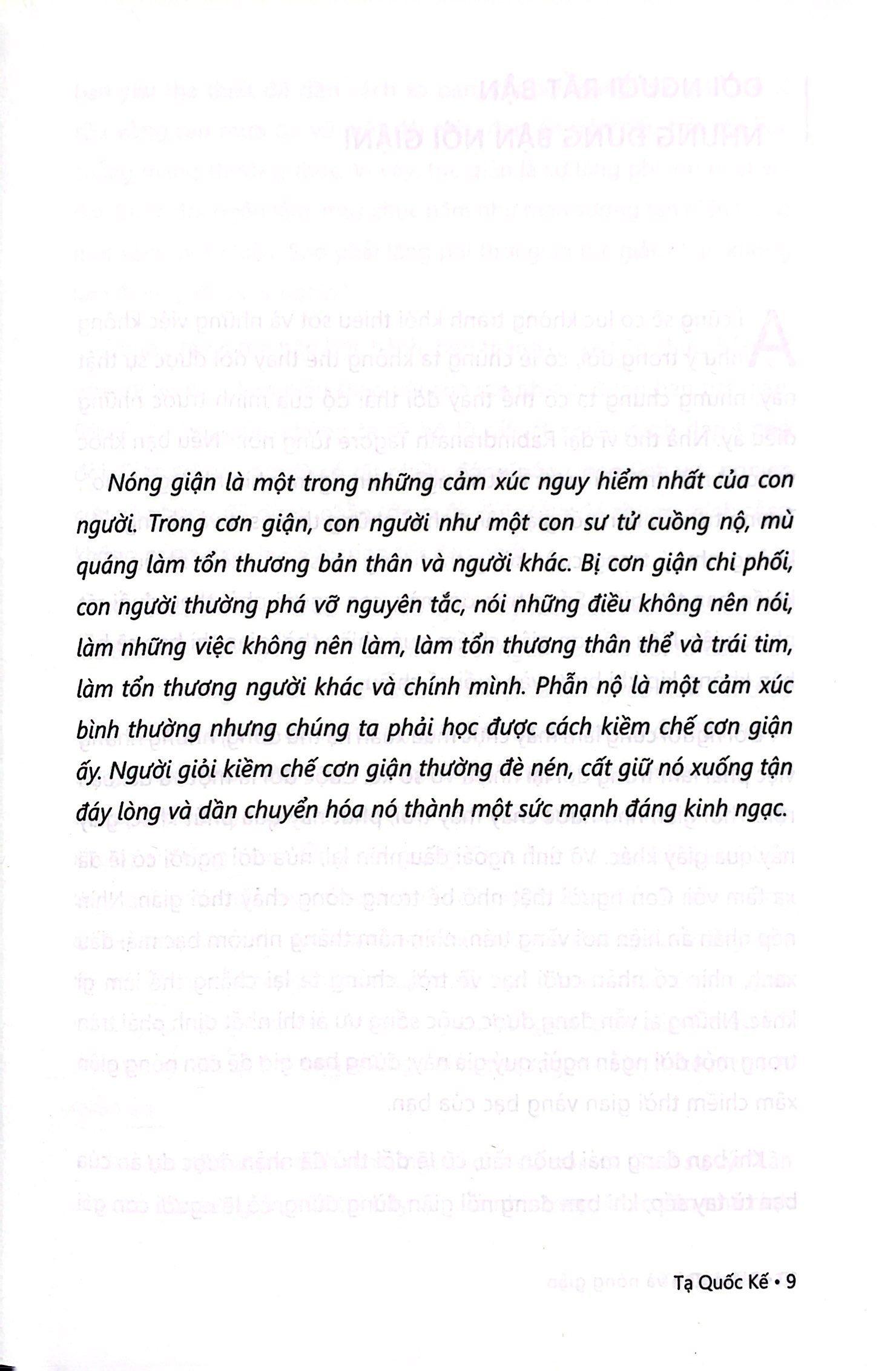 Tiếp nối sự thành công sau cuốn sách “Thuận cho người lợi cho m.ình”, tác giả Tạ Quốc Kế tái ngộ với chúng ta qua cuốn sách Điềm tĩnh & nóng giận, tiếp tục truyền cảm hứng sống đẹp, sống có ích cho mọi người. Thông qua những câu chuyện cụ thể và thực tế, lời lẽ chân thành và đầy sức thuyết phục, độc giả sẽ có những phút giây đủ tĩnh lặng để nhìn nhận lại cảm xúc của bản thân, hiểu hơn về tác hại của nóng giận và học được cách làm sao để kiểm soát tâm trạng.