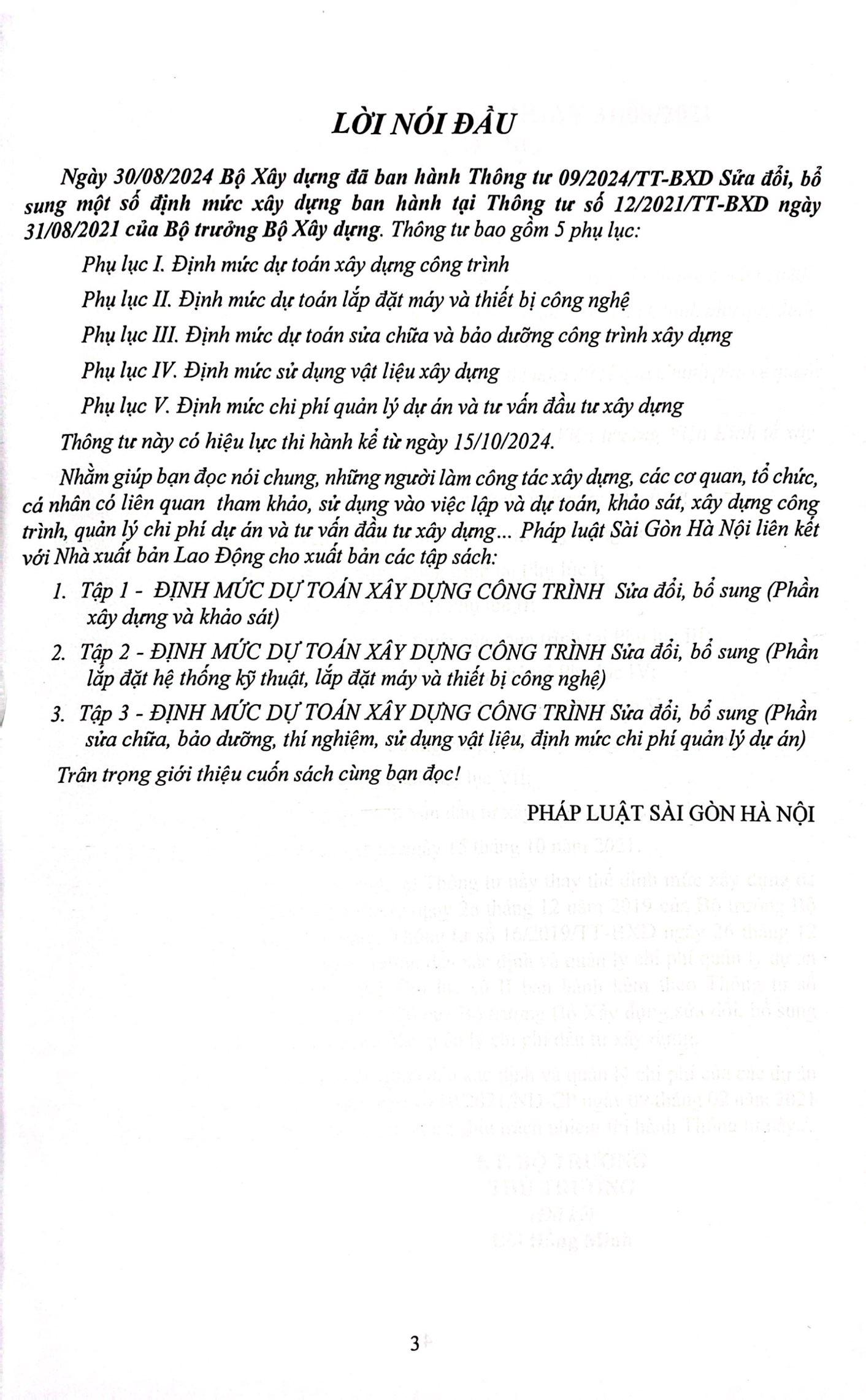 Nhằm giúp bạn đọc nói chung, những người làm công tác xây dựng, các cơ quan, tổ chức, cá nhân có liên quan tham khảo, sử dụng vào việc lập và dự toán, khảo sát, xây dựng công trình, quản lý chi phí dự án và tư vấn đầu tư xây dựng... Pháp luật Sài Gòn Hà Nội liên kết với Nhà xuất bản Lao Động cho xuất bản các tập sách: