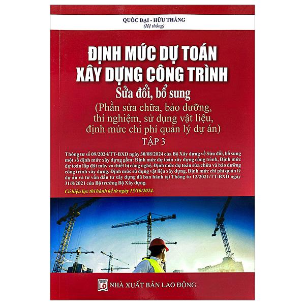 Định Mức Dự Toán Công Trình (Sửa Đổi, Bổ Sung) - Tập 3 - Sửa Chữa, Bảo Dưỡng, Thí Nghiệm, Sử Dụng Vật Liệu, Định Mức Chi Phí Quản Lý Dự Án
