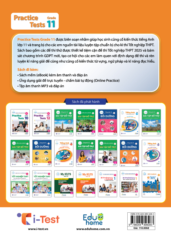Mua tại TiktokPractice Tests Grade 11 được biên soạn nhằm giúp học sinh củng cố kiến thức tiếng Anh lớp 11 và trang bị cho các em nguồn tài liệu luyện tập chuẩn bị cho kỳ thi Tốt nghiệp THPT.
