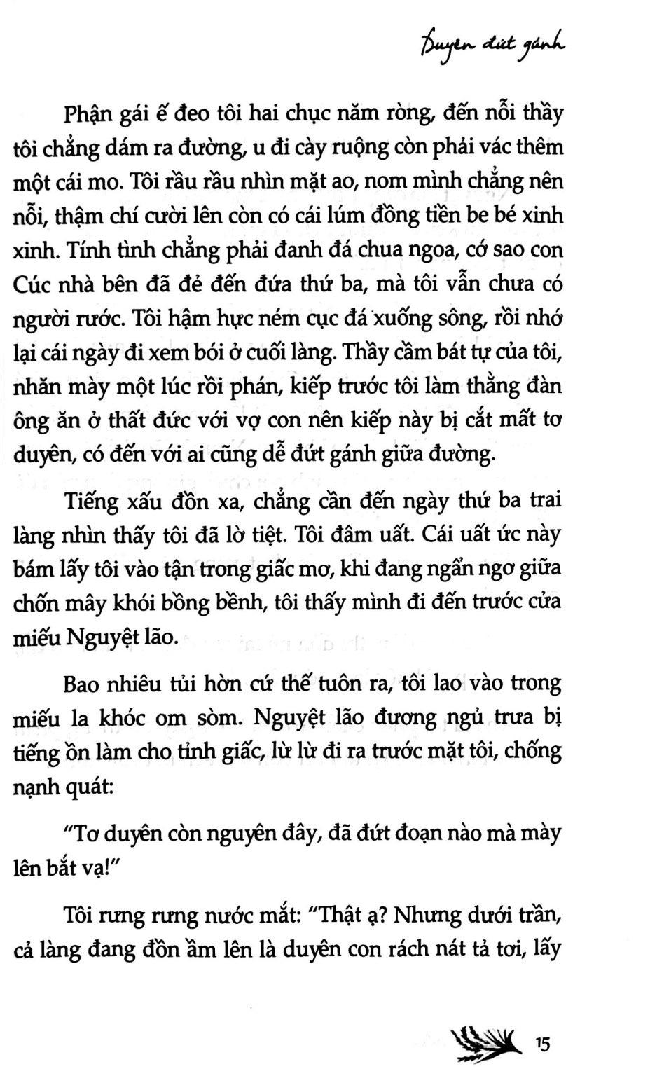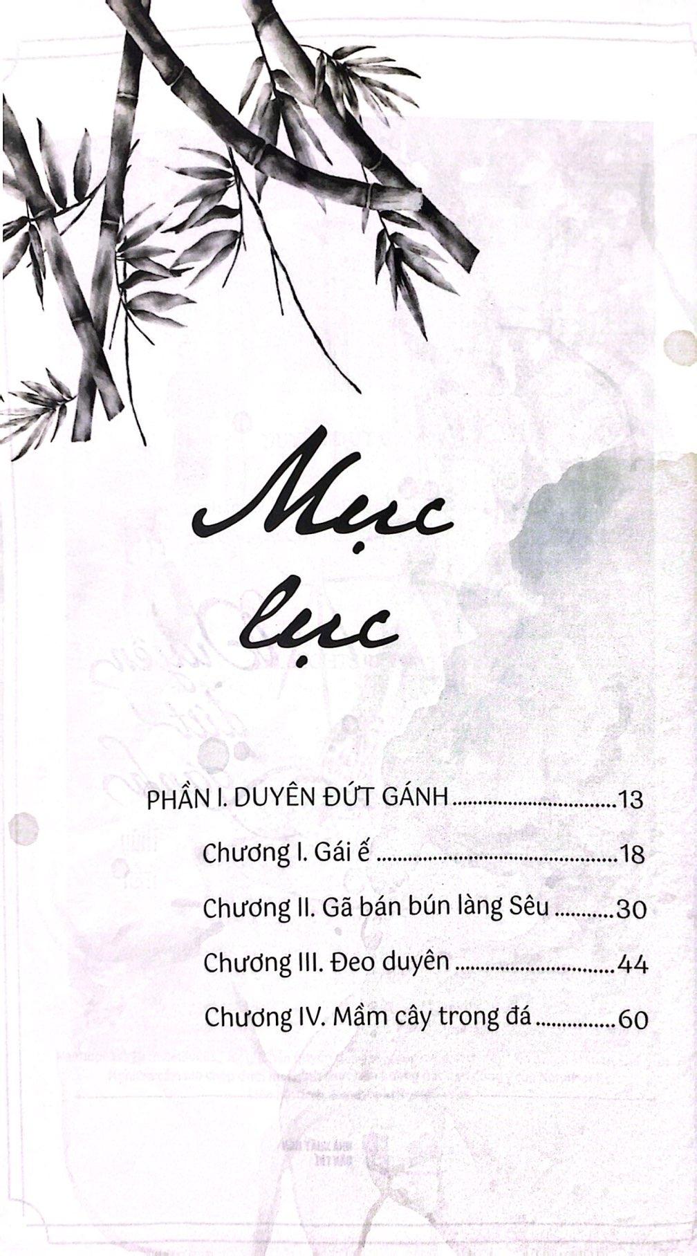 Với kết cấu phi tuyến tính đan xen giữa quá khứ và hiện tại, tác giả trẻ Thủy Trần đã tái hiện lại một không gian Bắc Bộ thôn quên chân chất gần gũi với những người nông dân lầm lũi, chịu thương chịu khó và chịu cả những tủi hờn, định kiến của xã hội xưa. Họ là những con người với thân phận nhỏ bé trong xâ hội nhưng sâu thẳm bên trong họ luôn lấp lánh niềm hy vọng sống, khao khát vươn lên khỏi nghịch cảnh để được yêu thương, đùm bọc, san sẻ lẫn nhau.