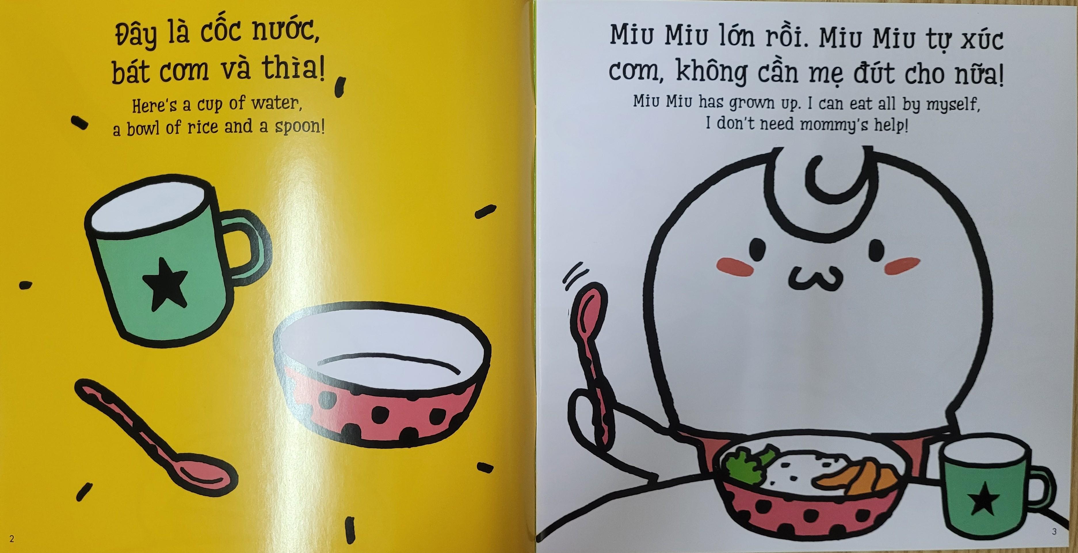 ✨Sách Ehon Miu Miu Tự Lập Phần 1 Song Ngữ - Xúc Cơm Ăn