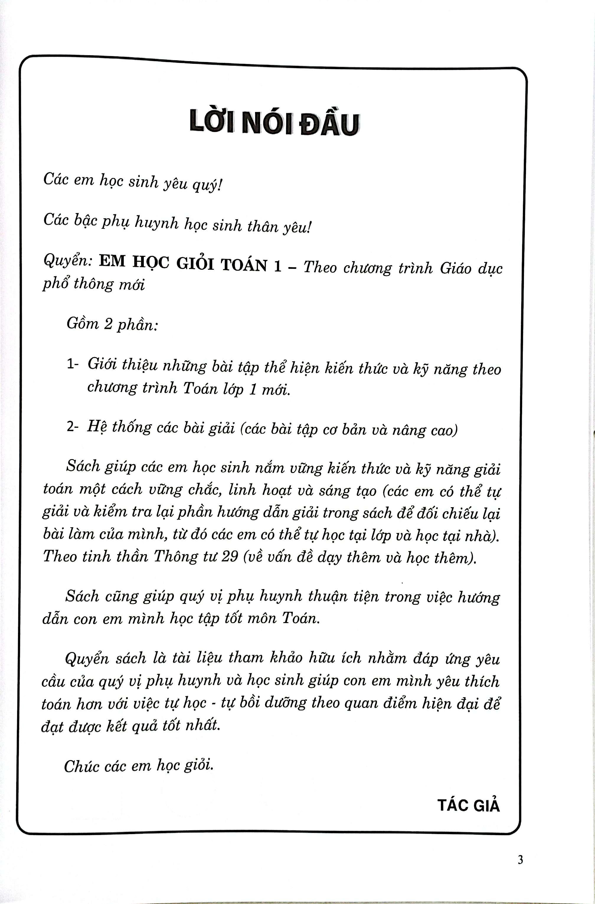 Mua tại TiktokEm Học Giỏi Toán 1 ( Dùng Chung Các Bộ SGK ) Nhằm giúp quý thầy, cô, phụ huynh và các em học sinh có thêm tư liệu hướng dẫn con em và để các em học sinh học tốt môn Toán lớp 1 theo chương trình giáo dục phổ thông mới, tác giả biên soạn quyển sách: Giúp Em Giỏi Toán Lớp 1 Nội dung sách được biên soạn không ngoài mục đích cùng quý thầy, cô và phụ huynh giúp các em học sinh lớp 1 rèn luyện khả năng phán đoán, suy luận, từ đó giúp các em phát triển năng lực học và yêu thích môn Toán hơn.
