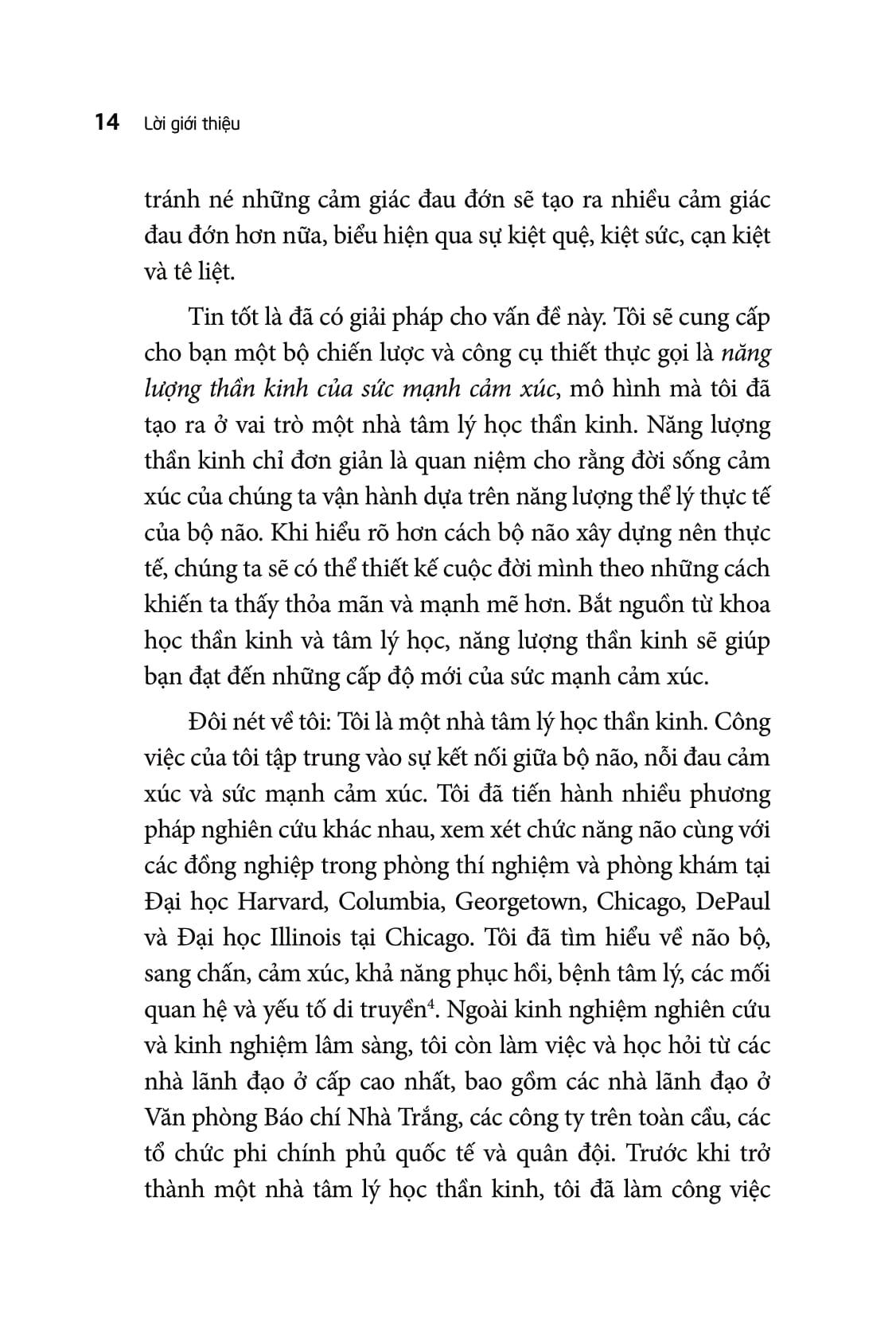 Đặc biệt, Tiến sĩ DiGangi không chỉ mang đến những thông tin đầy thú vị về cảm xúc và não bộ, mà còn chia sẻ những câu chuyện sống động, chân thực từ cuộc sống: từ những thử thách trong công sở, những mâu thuẫn gia đình, cho đến những cú sốc tâm lý sâu sắc, những vết thương hậu chiến tranh. Và mỗi câu chuyện đều mang đến thông điệp: Sức mạnh cảm xúc là khả năng vươn lên ngay cả khi hoàn cảnh cho bạn rất nhiều lý do chính đáng để chùn bước.