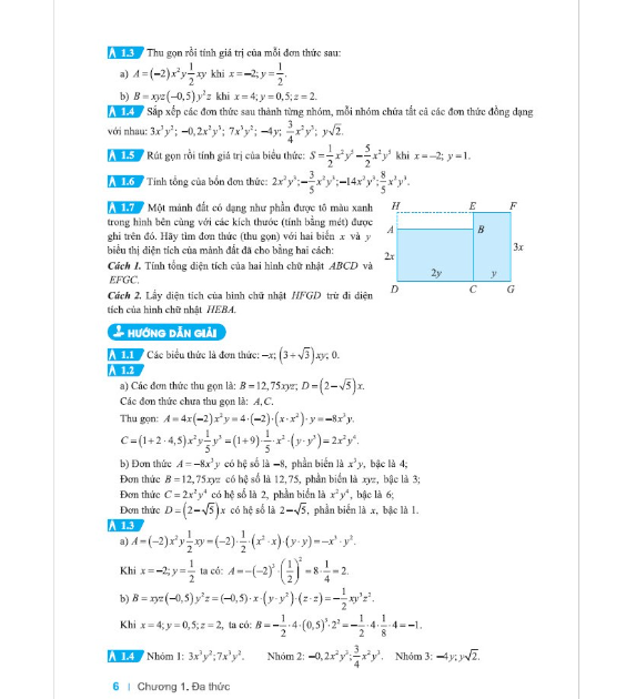 SÁCH BÀI TẬP - TOÁN 8 (Kết Nối Tri Thức) Bài 2: ĐA THỨC (trang 9) (Bài tập 1.7 - 1.12)