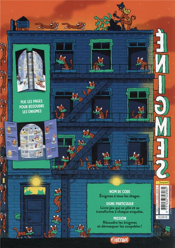Énigmes à tous les étages : le retour du tome 2, actualisé et complété par des niveaux de difficulté pour chacune des énigmes ! Un livre-jeu génial qui se plie et se transforme à chaque enquête, et dans lequel le lecteur s'improvise détective ! Pour chaque énigme, des questions sont posées et des indices sont donnés. Grâce à la lecture des témoignages des victimes et à l'observation des décors intérieurs et extérieurs, l'enfant résout son énigme et découvre le ou les coupables. Treize énigmes très différentes, riches en couleurs avec des personnages pittoresques : Le trésor des 7 nains. Coup de chaud à l'Hôtel des glaces. La ferme en folie. Vol au supermarché. Sabotage sur Mars. Mystère à l'école des samouraïs. Vol dans le camping-car. Le concert aux dix mystères.