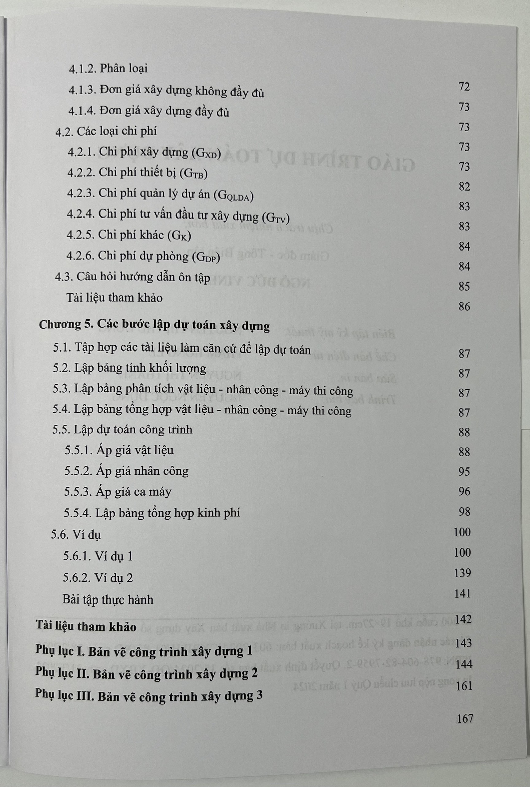 Giáo trình này cập nhật những quy định và hướng dẫn mới nhất của Chính phủ về quản lý chi phí đầu tư xây dựng của Bộ xây dựng về xác định và quản lý chi phí đầu tư xây dựng, định mức xây dựng, phương pháp xã định các chỉ tiru kinh tế kỹ thuật và đo bóc khối công trình. Nhiều ví dụ và bài tập được đưa vào giáo trình nhằm giúp người đọc nắm bắt và có thể thực hành ngay các bước lập dự toán từ các công trình xây dựng thực tế.