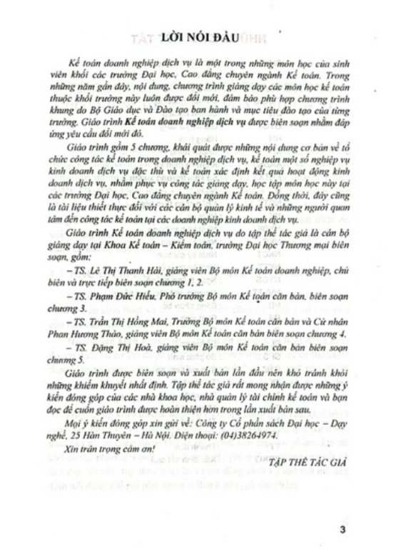 Giáo trình Kế toán doanh nghiệp dịch vụ do tập in thể tác giả là cán bộ giảng dạy tại Khoa Kế toán – Kiểm toán, trường Đại học Thương mại biên soạn, gồm: Толи