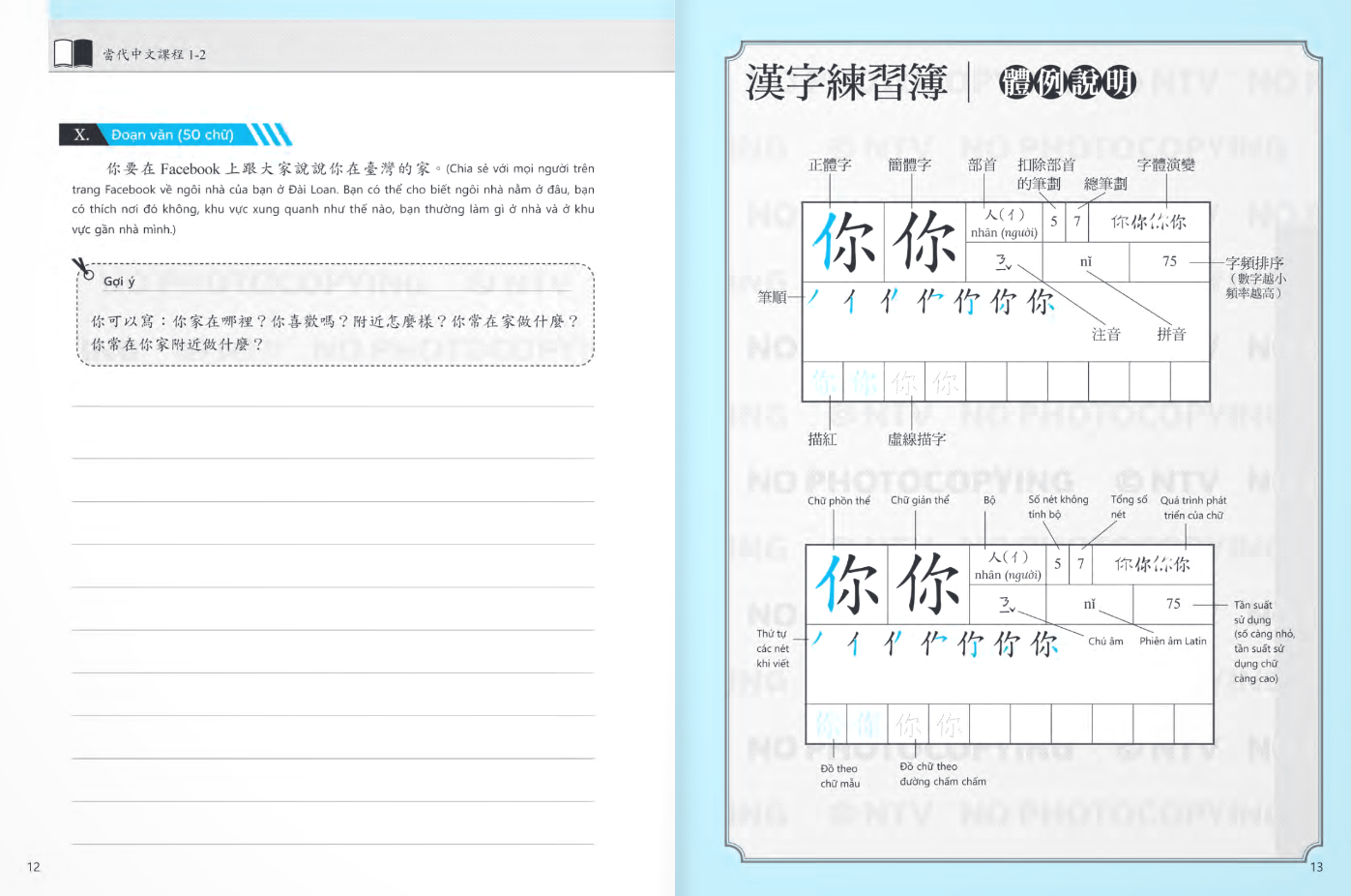 Giáo Trình Tiếng Hoa Đương Đại - Sách Bài Tập + Sách Tập Viết 1-2 Bộ sách dành cho học sinh đến Đài Loan học tiếng Hoa và cũng là giáo trình phù hợp với