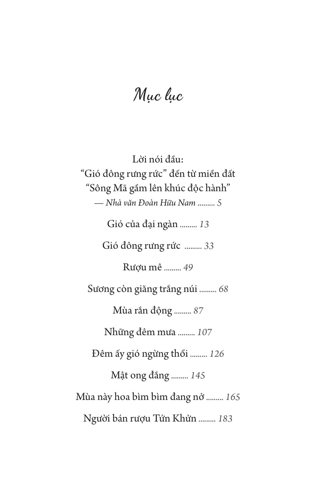 Mua tại TiktokGió Đông Rưng Rức Man mác, liêu trai, mỹ lệ, nồng nàn - “Gió đông rưng rức” là tuyển tập gồm 10 truyện ngắn của nhà văn Hoàng Lệ Thủy. Đến với Sơn La từ năm 19 tuổi, công tác tại Bệnh viện Y Dược cổ truyền Sơn La, nhà văn đã có dịp tiếp xúc và gắn bó dài lâu với vùng đất này. Tác phẩm là công phu viết lách và cảm nhận mấy mươi năm của tác giả, mang đến cái nhìn trực diện vào những phận đời bất hạnh bị lãng quên ở những vùng sâu, vùng xa, những tàn dư hủ tục giết chết con người còn tồn đọng trong xã hội. Xuyên suốt tuyển truyện, tác giả đưa người đọc đến với miền đất Tây Bắc bạt ngàn núi rừng thăm thẳm, với những số kiếp lam lũ, chịu thương chịu khó vì cuộc sống mưu sinh, những truyền thuyết huyền bí, ma mị, những phong tục, tập quán truyền đời đậm đà bản sắc. Để rồi, từng trang văn lại gợi ra bao vết thương ám ảnh khôn nguôi, bao tủi hổ vì vị trí thấp hèn, bao trăn trở vì cơm áo gạo tiền, bao giọt nước mắt vì nỗi đau mất người thân, bao nỗi chán chường với cảnh sống tủi cực, bao tâm tư ẩn mật chưa từng hé lộ. Đó là cái thực tại của những con người còn cắn răng cam chịu “cái số” của m.ình, chưa dám vùng lên giành lại lẽ sống. Đó cũng là sự cảm thông của tác giả đối với những số phận phụ nữ thống khổ cùng cực vì bị động nương tựa vào đàn ông, vì bị hủ tục dồn ép vào đường cùng. Mỗi câu chuyện đều mang một thông điệp, niềm thương cảm riêng, đánh thức lòng trắc ẩn trong mỗi độc giả, kêu gọi hành động để mang đến những đổi thay tích cực cho cộng đồng, không chỉ trong các dân tộc thiểu số nói riêng mà toàn xã hội nói chung, bởi những bi kịch ấy có thể xảy ra ở bất cứ nơi đâu. “Có thể nói đây là một tập truyện ngắn về đời sống thường ngày của người dân tộc miền núi với lối viết rất chắc tay, bài bản, đi sâu vào nhiều chi tiết mới lạ, ma mị, thuyết phục. Thuyết phục ở văn chương mộc mạc, ở lối kể chuyện thật thà, kỹ lưỡng, có nhiều chi tiết sinh động, diễn tả tâm lý sâu sắc. Thuyết phục ở những nét giới thiệu phong tục tập quán, lấy phong tục tập quán làm nổi bật hoàn cảnh, tính cách, tâm lý nhân vật. Thuyết phục bởi hầu hết các đối tượng, nhân vật miêu tả trong những trang sách đều có số phận éo le, thậm chí bị dồn đến đường cùng song luôn nuôi giữ tính nhân hậu, hướng thiện, vì mọi người.” – Nhà văn Đoàn Hữu Nam.