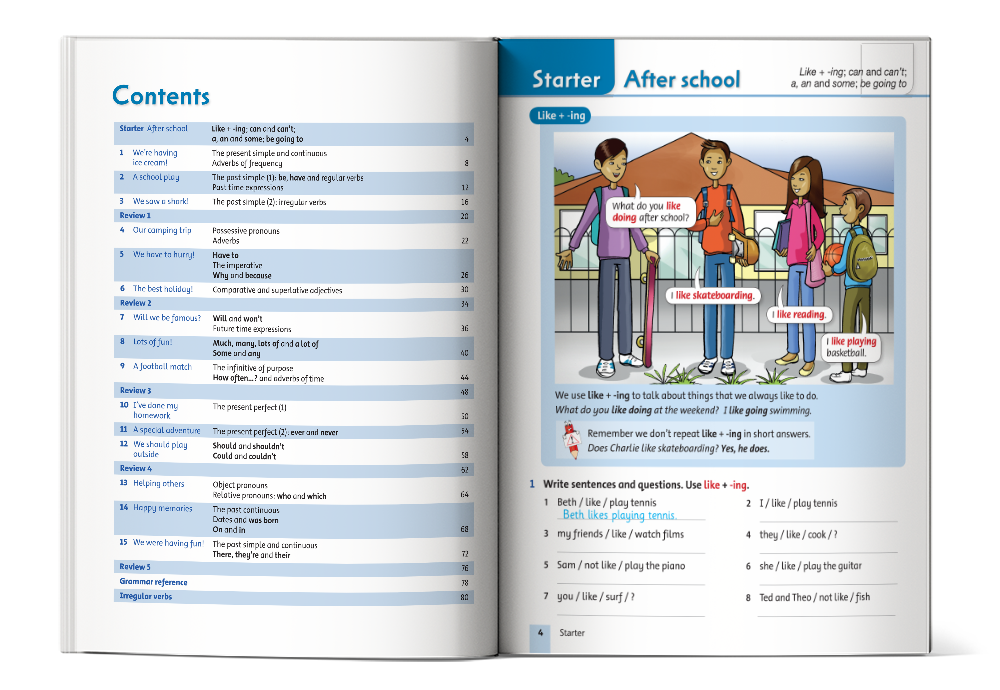 • Starter: Ôn tập Like + -ing, can và can't, a/an/some, be going to.