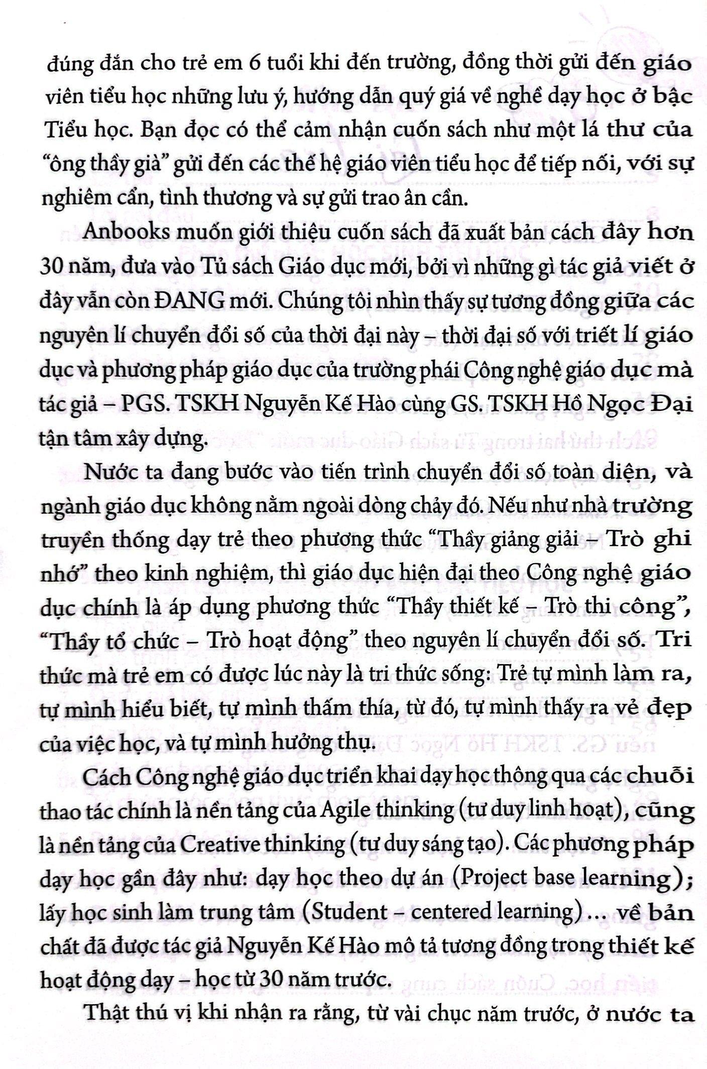 Fahasa muốn giới thiệu cuốn sách đã xuất bản cách đây 30 năm, đưa vào Tủ sách Giáo dục mới, bởi vì những gì tác giả viết ở đây vẫn còn ĐANG mới. Chúng tôi nhìn thấy sự tương đồng giữa các nguyên lí chuyển đổi số của thời đại này – thời đại số với triết lí giáo dục và phương pháp giáo dục của trường phái Công nghệ giáo dục mà tác giả - Nguyễn Kế Hào cùng Hồ Ngọc Đại tận tâm xây dựng.