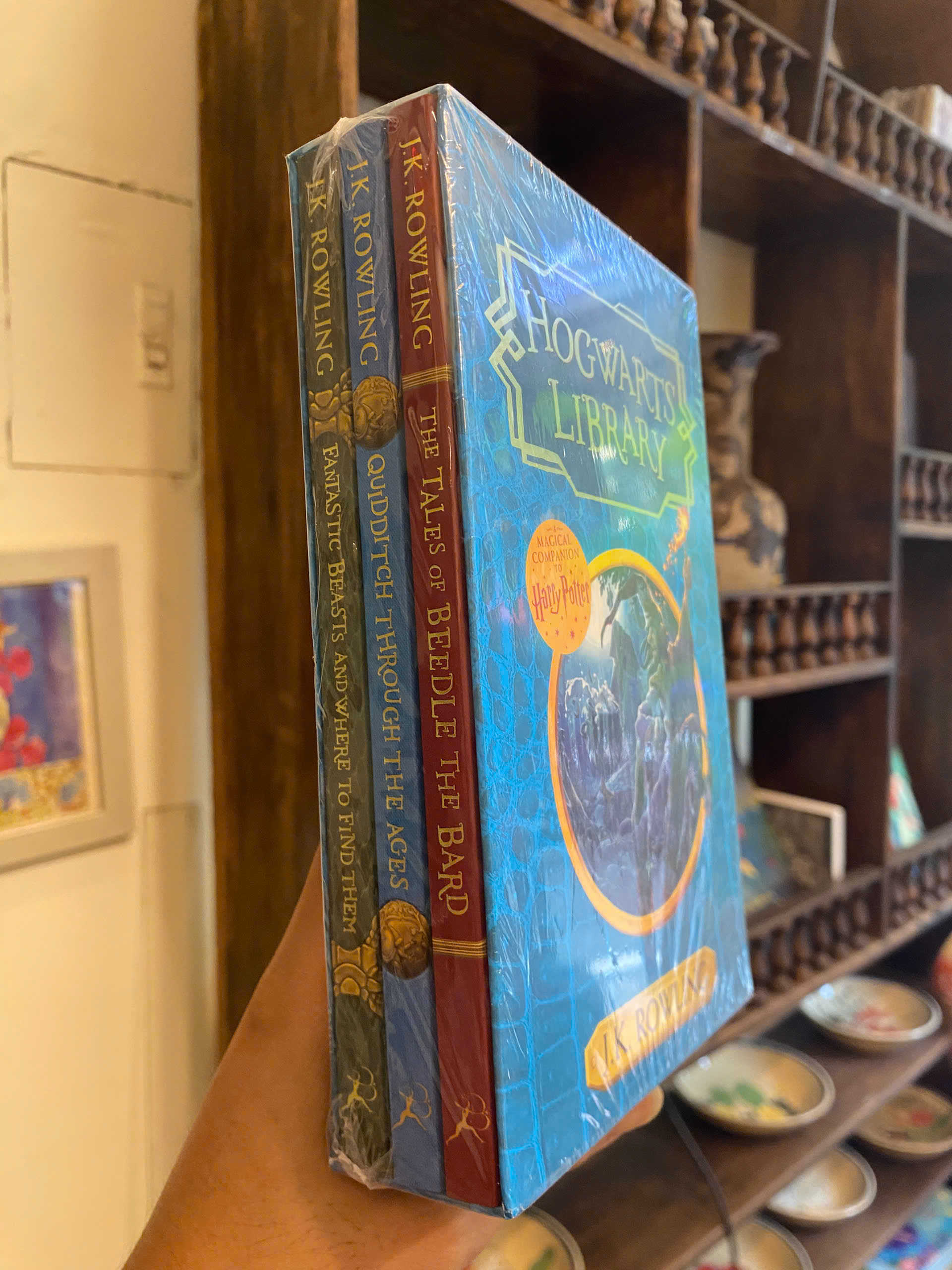 Bộ sưu tập gồm ba cuốn sách được những người sử dụng thư viện lớn tại Trường Phù thủy và Pháp sư Hogwarts trân trọng: Fantastic Beasts and Where to Find Them, tác phẩm tuyệt vời của Newt Scamander về các sinh vật huyền bí; Quidditch Through the Ages, một lịch sử toàn diện của trò chơi và các quy tắc của nó; và The Tales of Beedle the Bard, với phần giới thiệu và minh họa của J.K. Rowling và bình luận sâu rộng của Albus Dumbledore. Là một kho tàng về các sự kiện và câu chuyện cổ tích thần kỳ, Bộ sưu tập Thư viện Hogwarts là một người bạn đồng hành cần thiết cho bộ truyện Harry Potter. Bộ sưu tập này bao gồm phiên bản cập nhật của Fantastic Beasts and Where to Find Them, với lời tựa mới từ J.K. Rowling (viết là Newt Scamander) và sáu con thú mới
