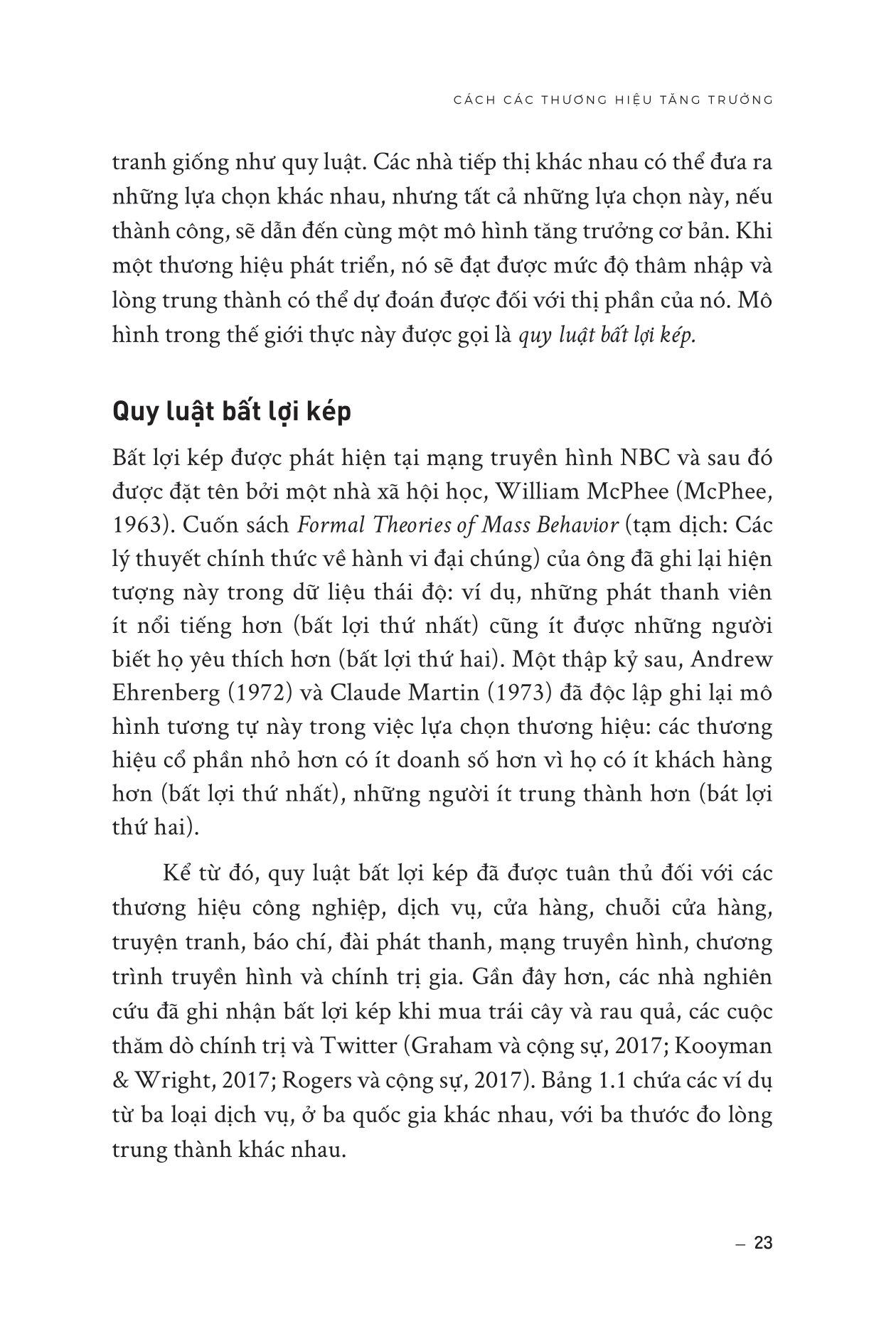 - Tập trung vào các hoạt động marketing định kỳ, như quảng cáo liên tục và khuyến mãi, để giữ chân khách hàng hiện có. Cuốn sách này có gì đặc biệt? Đầu tiên, cuốn sách giúp độc giả hiểu rõ hơn về cách các khách hàng thực sự mua hàng và tương tác với thương hiệu. Các nhà quản lý sẽ học được cách phát hiện ra các yếu tố quan trọng trong quá trình mua hàng và cách thiết lập mối quan hệ với khách hàng của m.ình. Thứ hai, cuốn sách chỉ ra các công cụ và phương pháp nghiên cứu giúp độc giả hiểu rõ hơn về thị trường và khách hàng của họ, đồng thời đánh giá các yếu tố ảnh hưởng đến quyết định mua hàng của khách hàng cũng như cách tạo ra trải nghiệm khách hàng tốt nhất để tăng trưởng doanh số bán hàng. Cuối cùng, cuốn sách mang lại cho độc giả một cái nhìn toàn diện về tăng trưởng thương hiệu và doanh số bán hàng không chỉ trong các thị trường phát triển mà còn ở các thị trường mới nổi, dịch vụ, hàng tiêu dùng, B2B và thương hiệu sang trọng. Các độc giả sẽ học được cách phát triển chiến lược marketing hiệu quả và tăng trưởng doanh số bán hàng trong nhiều loại hình thị trường khác nhau. Cuốn sách này dành cho ai? Cuốn sách hướng tới độc giả là các nhà quản lý thương hiệu, các chuyên gia marketing, các nhà nghiên cứu cũng như những người cần giải quyết các công việc liên quan đến tăng trưởng thương hiệu và phát triển chiến lược marketing hiệu quả. Các độc giả mong muốn có thêm các kiến thức và phương pháp để phát triển chiến lược marketing và tăng trưởng doanh số bán hàng. Cuốn sách giúp các độc giả hiểu rõ hơn về các yếu tố quan trọng để thu hút khách hàng mới và giữ chân khách hàng hiện có, cũng như đưa ra các khuyến nghị cụ thể về cách tăng trưởng thương hiệu trong các thị trường mới nổi, dịch vụ, hàng tiêu dùng, B2B và thương hiệu xa xỉ. Giới thiệu về tác giả Giáo sư Byron Sharp là Giám đốc Viện Khoa học Tiếp thị Ehrenberg-Bass tại Đại học Nam Úc. Nghiên cứu cơ bản của Viện được sử dụng và hỗ trợ tài chính bởi nhiều tập đoàn hàng đầu thế giới bao gồm Coca-Cola, Kraft, Kellogg's, British Airways, Procter & Gamble, Nielsen, TNS, Turner Broadcasting, Network Ten, Simplot, Mars và nhiều tập đoàn khác. Tiến sĩ Sharp đã xuất bản hơn 100 bài báo học thuật và là thành viên ban biên tập của năm tạp chí. Gần đây, ông đồng tổ chức một hội nghị tại Trường Kinh doanh Wharton về luật quảng cáo và cùng với Giáo sư Jerry Wind, đang biên tập một số đặc biệt của Tạp chí Nghiên cứu Quảng cáo về chủ đề này. Giáo sư Jenni Romaniuk là Phó Giám đốc (Quốc tế) của Viện Ehrenberg-Bass, Đại học Nam Úc. Trước đây, Jenni là biên tập viên điều hành của Tạp chí Nghiên cứu Quảng cáo, và hiện là thành viên Ban Cố vấn Cấp cao của Tạp chí. Đánh giá về cuốn sách “Nếu đã đọc và yêu thích Con đường tăng trưởng thương hiệu phần 2, đã đến lúc bạn cần chuyển sang cấp độ tiếp thị cao hơn. Và nếu chưa đọc, hãy chuẩn bị sẵn sàng -- cuốn sách này sẽ thay đổi cách bạn tư duy về tiếp thị mãi mãi.” - Goodreads “Đây là cuốn sách không thể bỏ qua đối với bất kỳ ai đang làm việc trong lĩnh vực Tiếp thị và Xây dựng Thương hiệu. Nếu bạn dày dạn kinh nghiệm, hãy từ những gì bạn NGHĨ bạn biết và đọc cuốn sách này.” - Henry Manampiring, tác giả