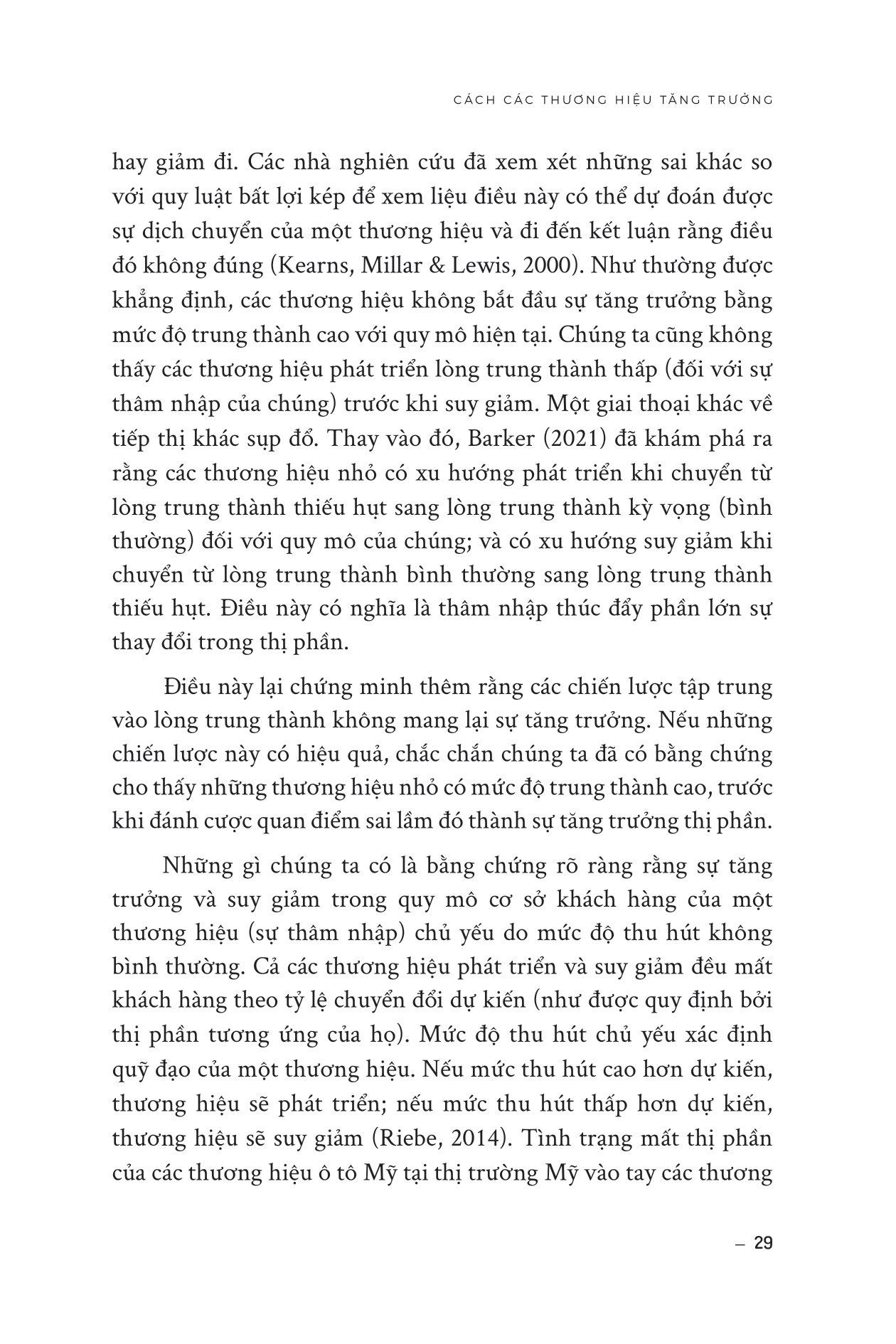 Cuối cùng, cuốn sách mang lại cho độc giả một cái nhìn toàn diện về tăng trưởng thương hiệu và doanh số bán hàng không chỉ trong các thị trường phát triển mà còn ở các thị trường mới nổi, dịch vụ, hàng tiêu dùng, B2B và thương hiệu sang trọng. Các độc giả sẽ học được cách phát triển chiến lược marketing hiệu quả và tăng trưởng doanh số bán hàng trong nhiều loại hình thị trường khác nhau.