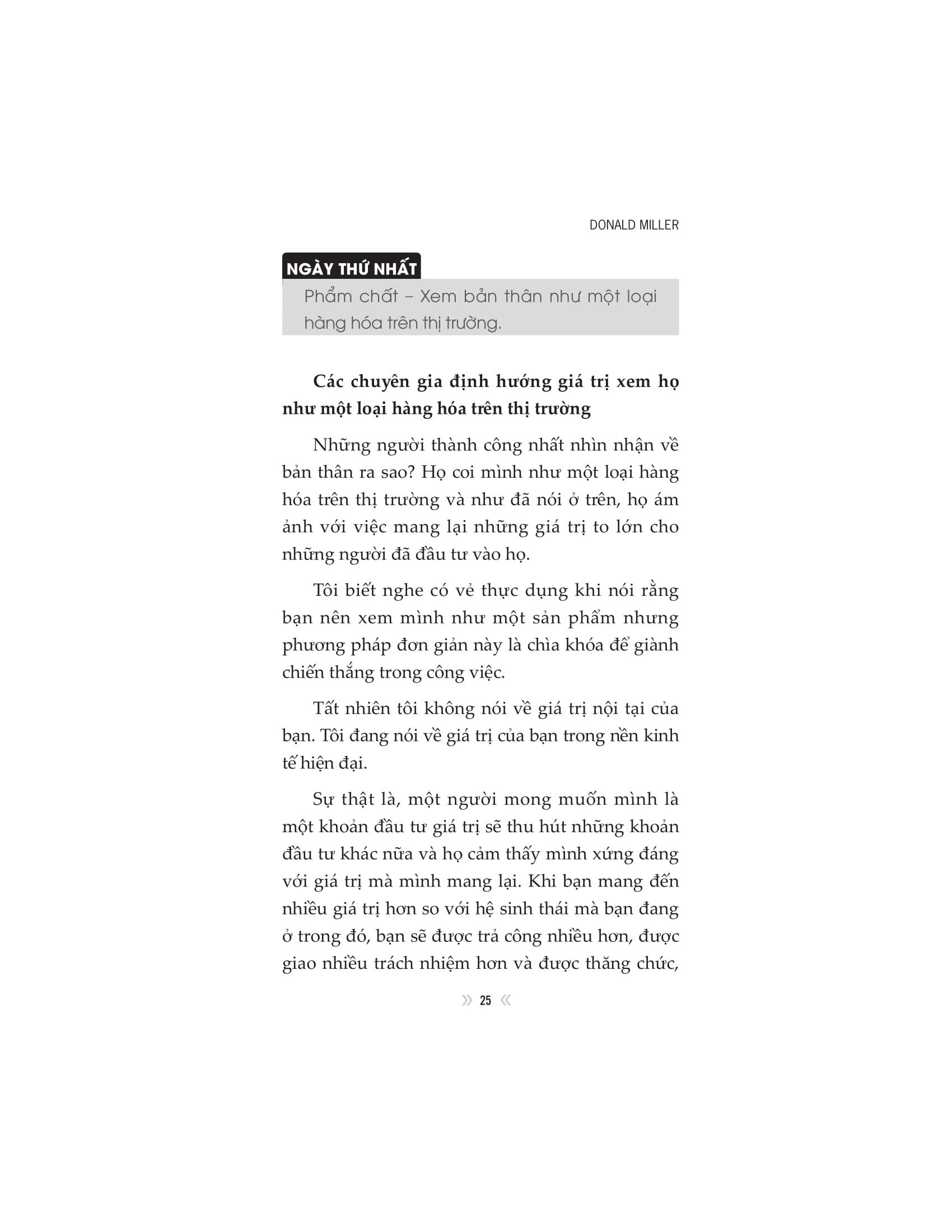 Donald Miller là tác giả và diễn giả người Mỹ. Ông là Giám đốc điều hành của Business Made Simple - một nền tảng trực tuyến giảng dạy về điều hành doanh nghiệp và phát triển bản thân. Ông cũng là người dẫn chương trình Business Made Simple podcast và là tác giả của một số cuốn sách, bao gồm cả những cuốn sách bán chạy nhất như Building a StoryBrand (Xây dựng câu chuyện thương hiệu).