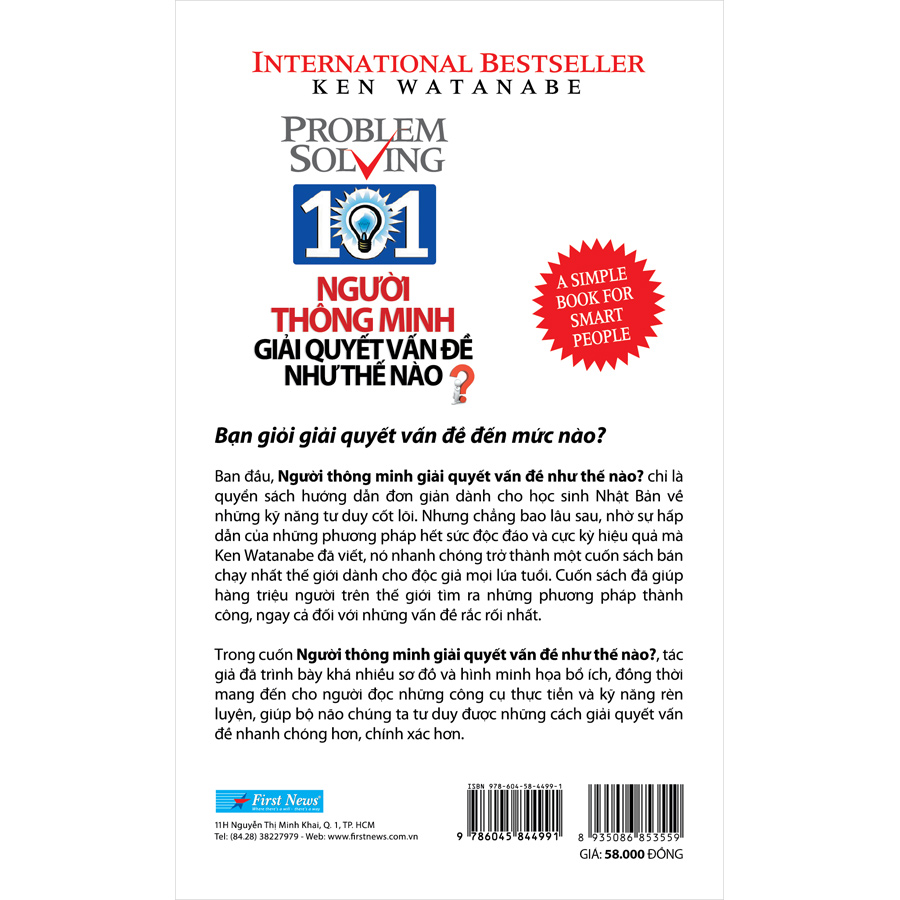 Ban đầu, Người thông minh giải quyết vấn đề như thế nào? chỉ là quyển sách hướng dẫn đơn giản dành cho học sinh Nhật Bản về những kỹ năng tư duy cốt lõi. Nhưng chẳng bao lâu sau, nhờ sự hấp dẫn của những phương pháp hết sức độc đáo và cực kỳ hiệu quả mà Ken Watanabe đã viết, nó nhanh chóng trở thành một cuốn sách bán chạy nhất thế giới dành cho độc giả mọi lứa tuổi. Cuốn sách đã giúp hàng triệu người trên khắp thế giới tìm ra những giải pháp thành công, ngay cả đối với những vấn đề rắc rối nhất.