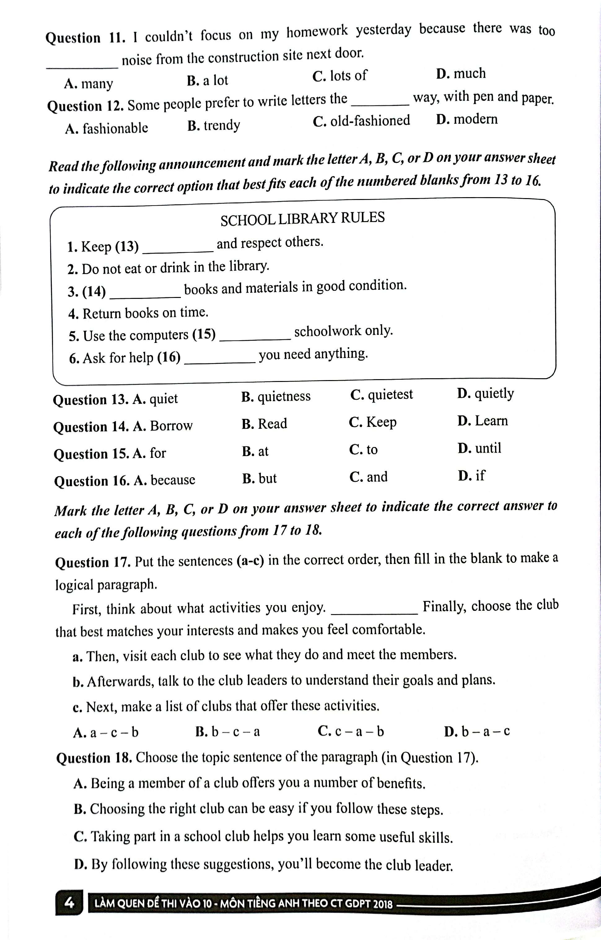 Mua tại TiktokLàm Quen Đề Thi Vào 10 - Môn Tiếng Anh - Theo CT GDPT 2018 - Dành Cho Học Sinh