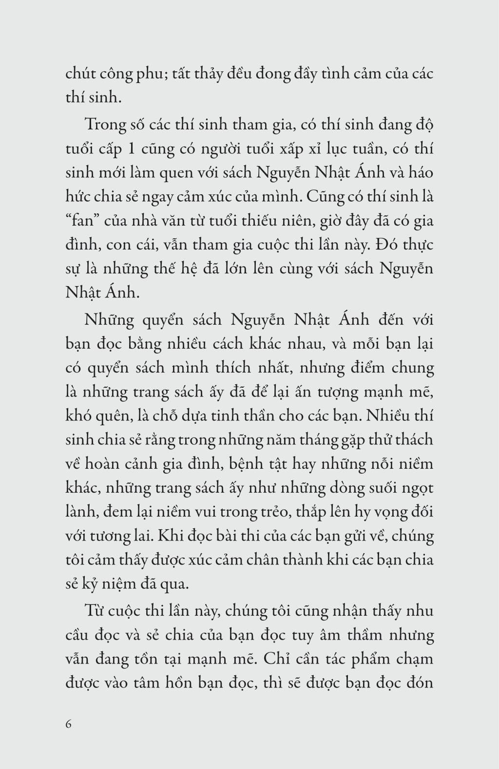 Tuyển tập các bài viết và tranh vẽ của bạn đọc về ảnh hưởng những cuốn sách của nhà văn Nguyễn Nhật Ánh tới tuổi thơ và cuộc đời của chính họ.
