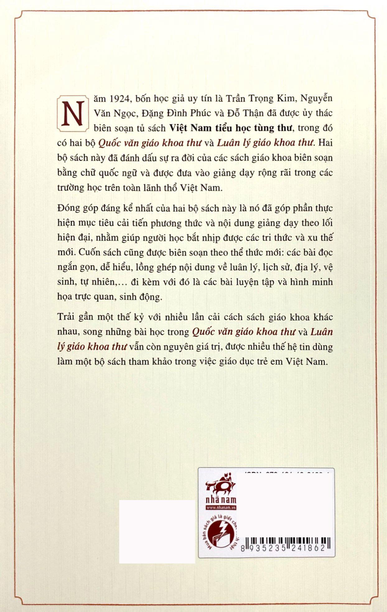 Năm 1924, Nha Học chính Đông Pháp (cơ quan trực thuộc Bộ Quốc dân Giáo dục) ủy thác cho bốn học giả uy tín là Trần Trọng Kim, Nguyễn Văn Ngọc, Đặng Đình Phúc và Đỗ Thận biên soạn hai bộ Quốc văn giáo khoa thư và Luân lý giáo khoa thư, gọi chung là Việt Nam tiểu học tùng thư. Hai bộ sách này đã lần đầu tiên đánh dấu sự ra đời của các sách giáo khoa biên soạn bằng chữ quốc ngữ và đưa vào giảng dạy rộng rãi trong các trường học trên toàn lãnh thổ Việt Nam.