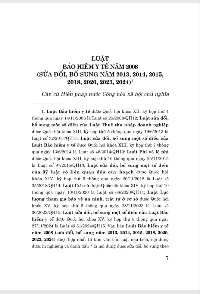 Mua tại TiktokLuật Bảo Hiểm Y Tế Năm 2008 (Sửa Đổi, Bổ Sung Năm 2013, 2014, 2015, 2018, 2020, 2023, 2024)