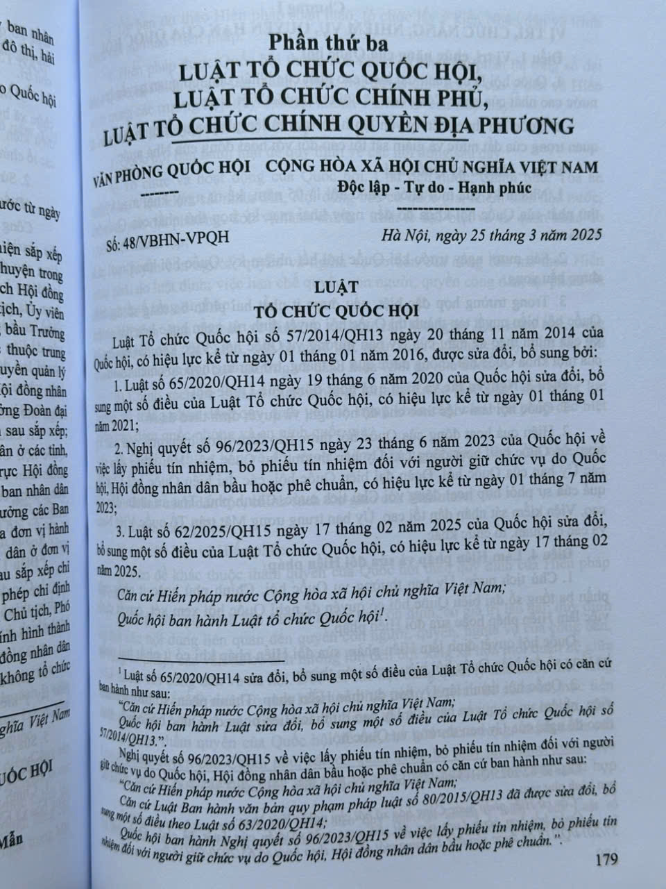 Phần thứ ba. LUẬT TỔ CHỨC QUỐC HỘI, LUẬT TỔ CHỨC CHÍNH PHỦ, LUẬT TỔ CHỨC CHÍNH QUYỀN ĐỊA PHƯƠNG