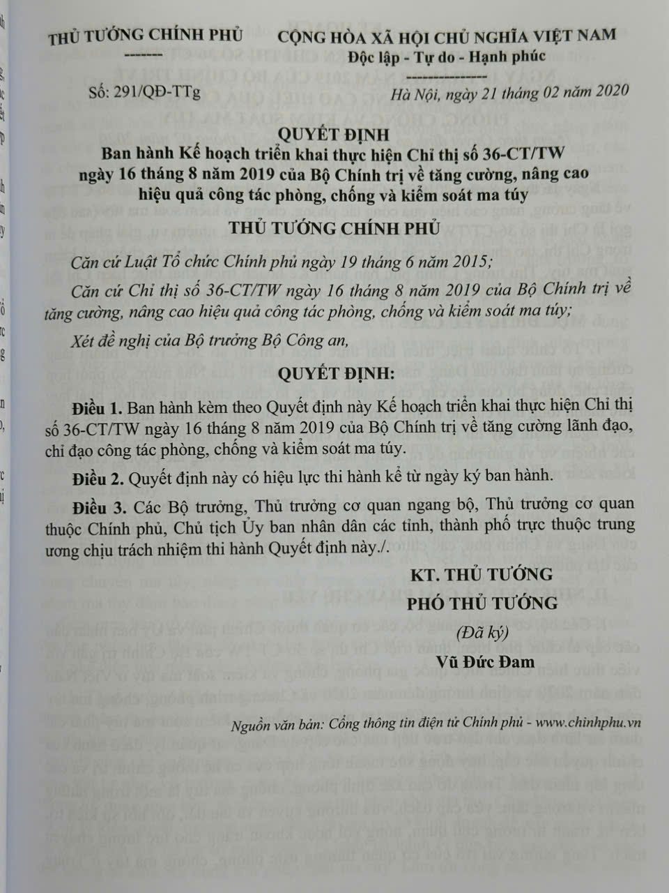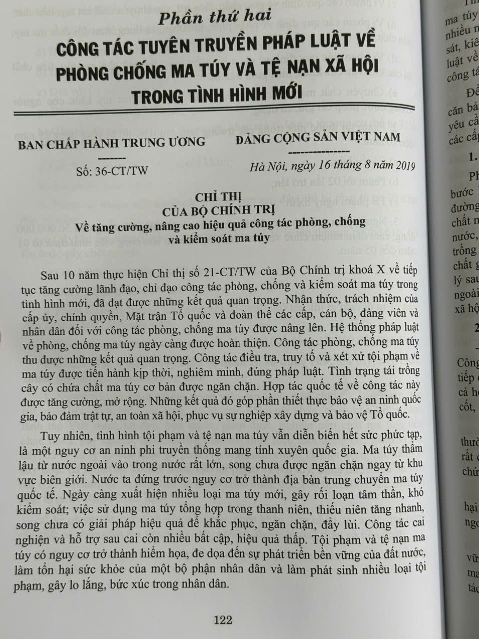 Ngày 16 tháng 8 năm 2019, Bộ Chính trị đã ký ban hành Chỉ thị số 36-CT⁄TW về tăng cường, nâng cao hiệu quả công tác phòng, chống và kiểm soát ma túy. Chỉ thị