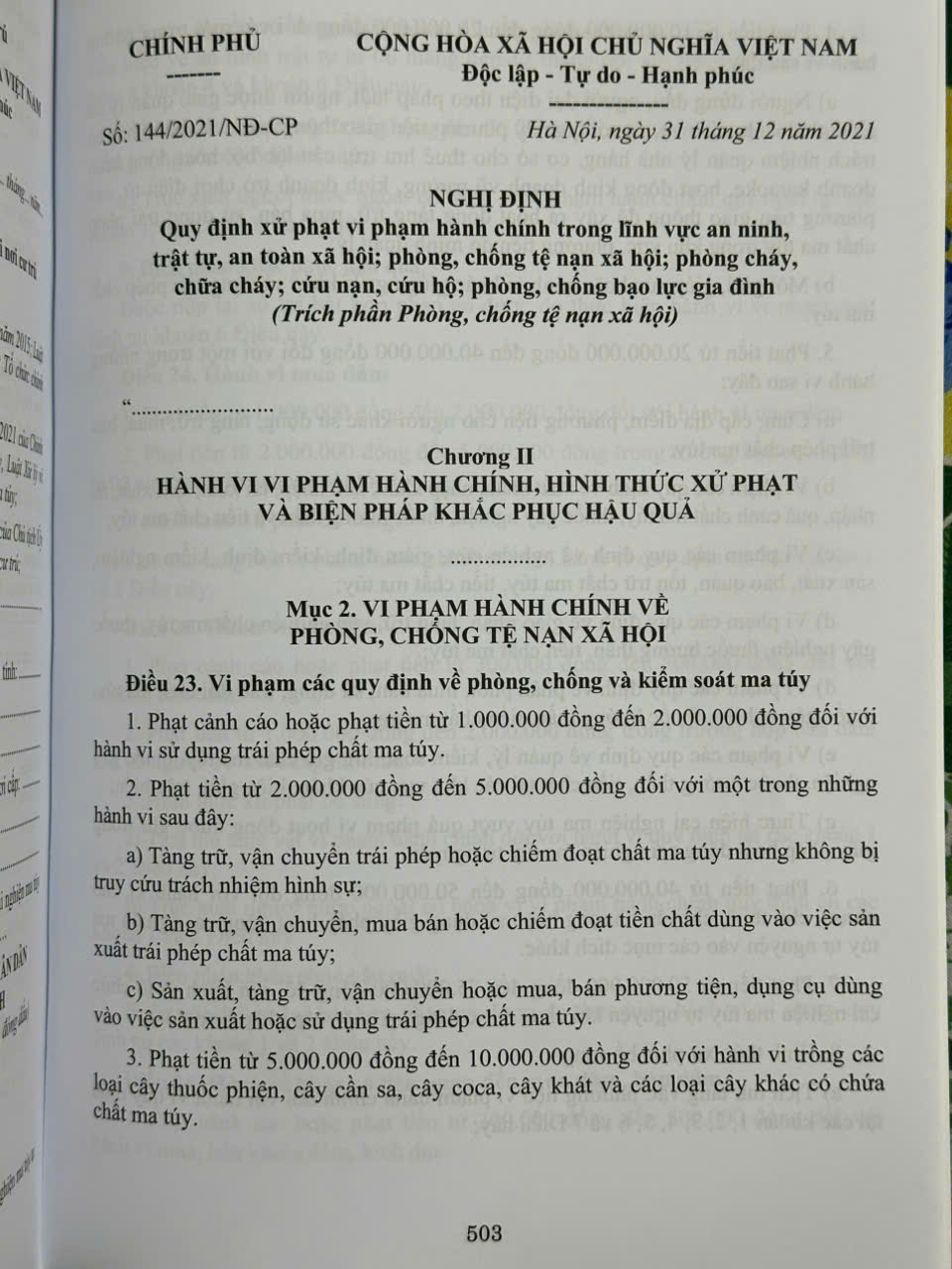 Phần thứ năm. Quy định xử phạt vi phạm hành chính trong lĩnh vực phòng, chống ma tuý và tệ nạn xã hội