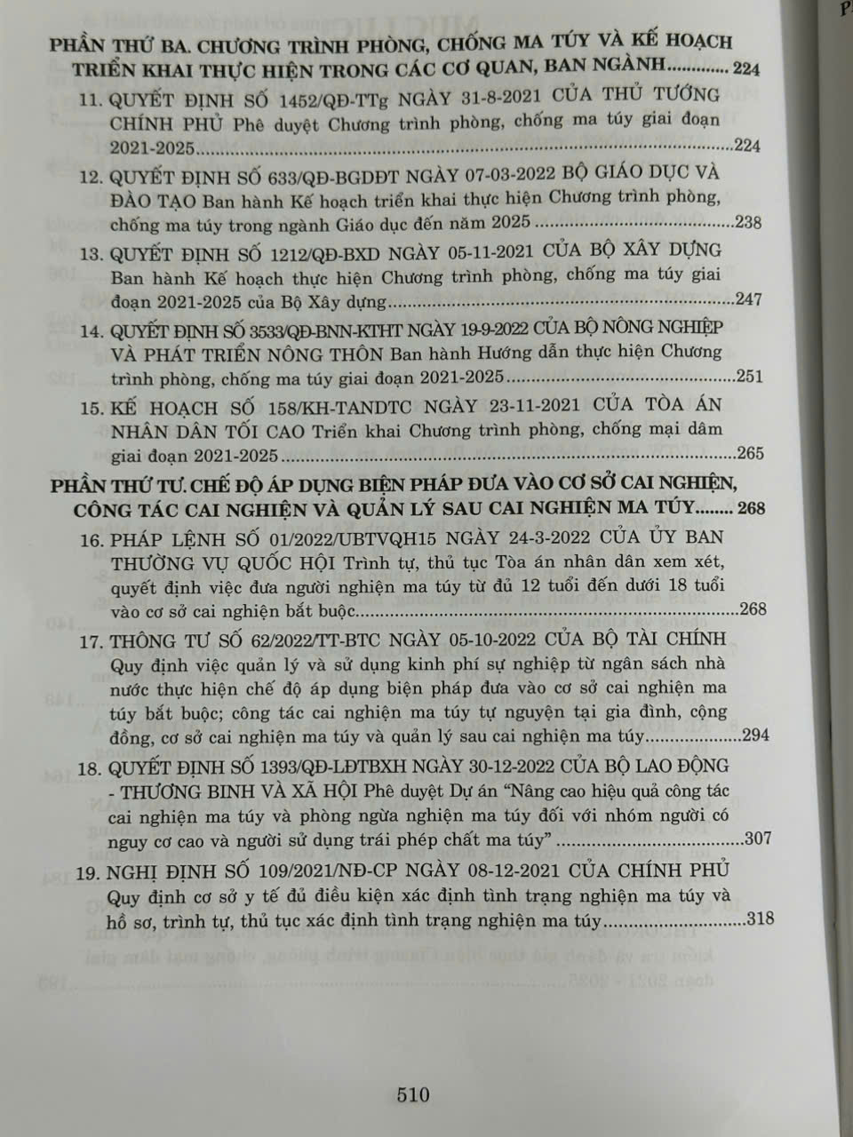 Phần thứ tư. Chế độ áp dụng biện pháp đưa vào cơ sở cai nghiện, công tác cai nghiện và quản lý sau cai nghiện ma tuý