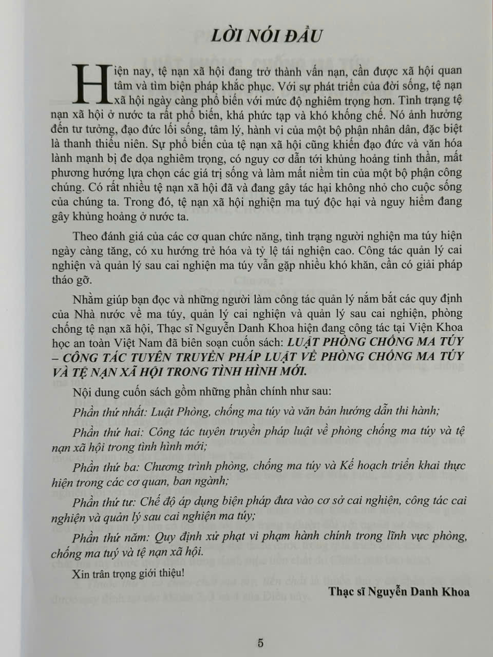 Nhằm giúp bạn đọc và những người làm công tác quản lý nắm bắt các quy định của Nhà nước về ma tuý, quản lý cai nghiện và quản lý sau cai nghiện, phòng chống tệ nạn xã hội, Thạc sĩ Nguyễn Danh Khoa công tác tại Viện Khoa học an toàn Việt Nam đã biên soạn cuốn sách: Luật Phòng Chống Ma Tuý – Công Tác Tuyên Truyền Pháp Luật Về Phòng Chống Ma Tuý Và Tệ Nạn Xã Hội Trong Tình Hình Mới
