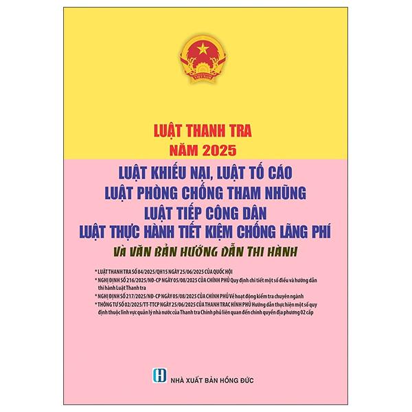 Nhằm phổ biến đến Quý Cơ quan, Đơn vị và Quý khách hàng thân thiết nắm bắt kịp thời những quy định mới nêu trên. chúng tôi xin trân trọng giới thiệu cuốn sách: Luật Thanh Tra năm 2025, Luật Khiếu Nại, Luật Tố Cáo, Luật Phòng, Chống Tham Nhũng, Luật Tiếp Công Dân, Luật Thực Hành Tiết Kiệm Chống Lãng Phí Và Văn Bản Hướng Dẫn Thi Hành