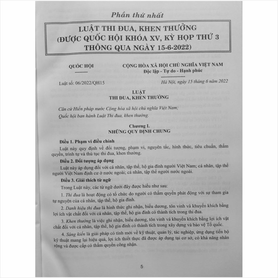 [Bản full - Đọc luật] Luật thi đua khen thưởng số 06/2022, hiệu lực thi hành từ ngày 01/01/2024.