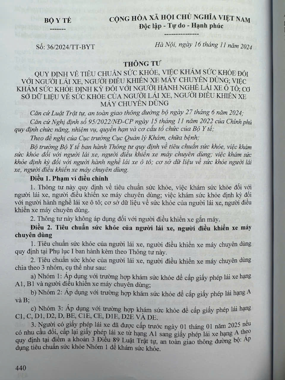 – Thông tư số 36/2024/TT-BYT ngày 16 tháng 11 năm 2024.