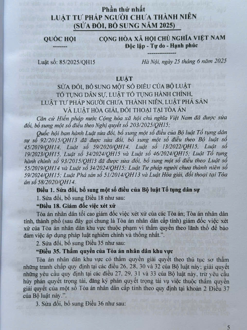 Phần thứ nhất. LUẬT TƯ PHÁP NGƯỜI CHƯA THÀNH NIÊN (sửa đổi, bổ sung năm 2025).