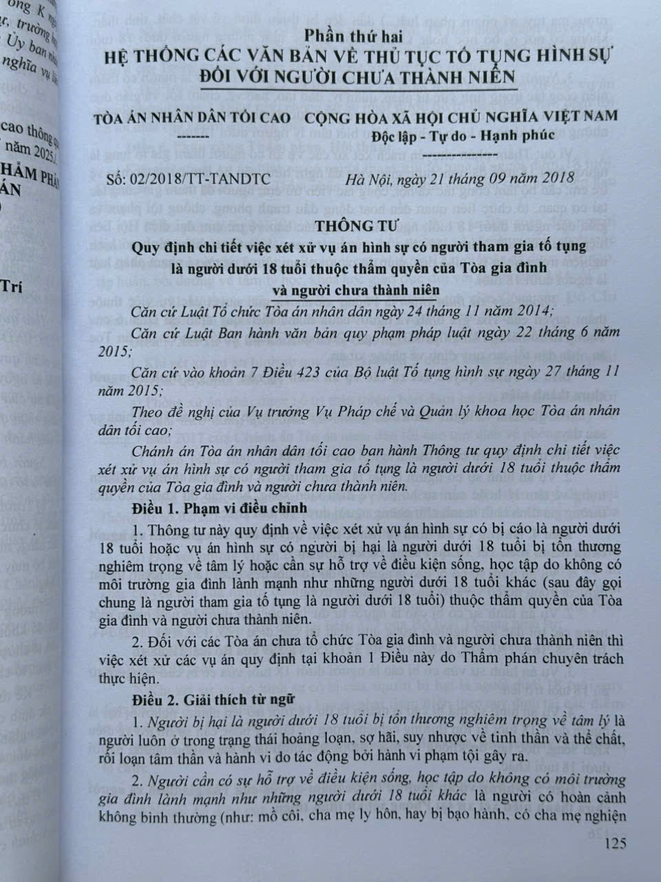 Luật Tư Pháp Người Chưa Thành Niên (sửa đổi, bổ sung năm 2025) – Hệ Thống Các Văn Bản Về Thủ Tục Tố Tụng Hình Sự Đối Với Người Chưa Thành Niên