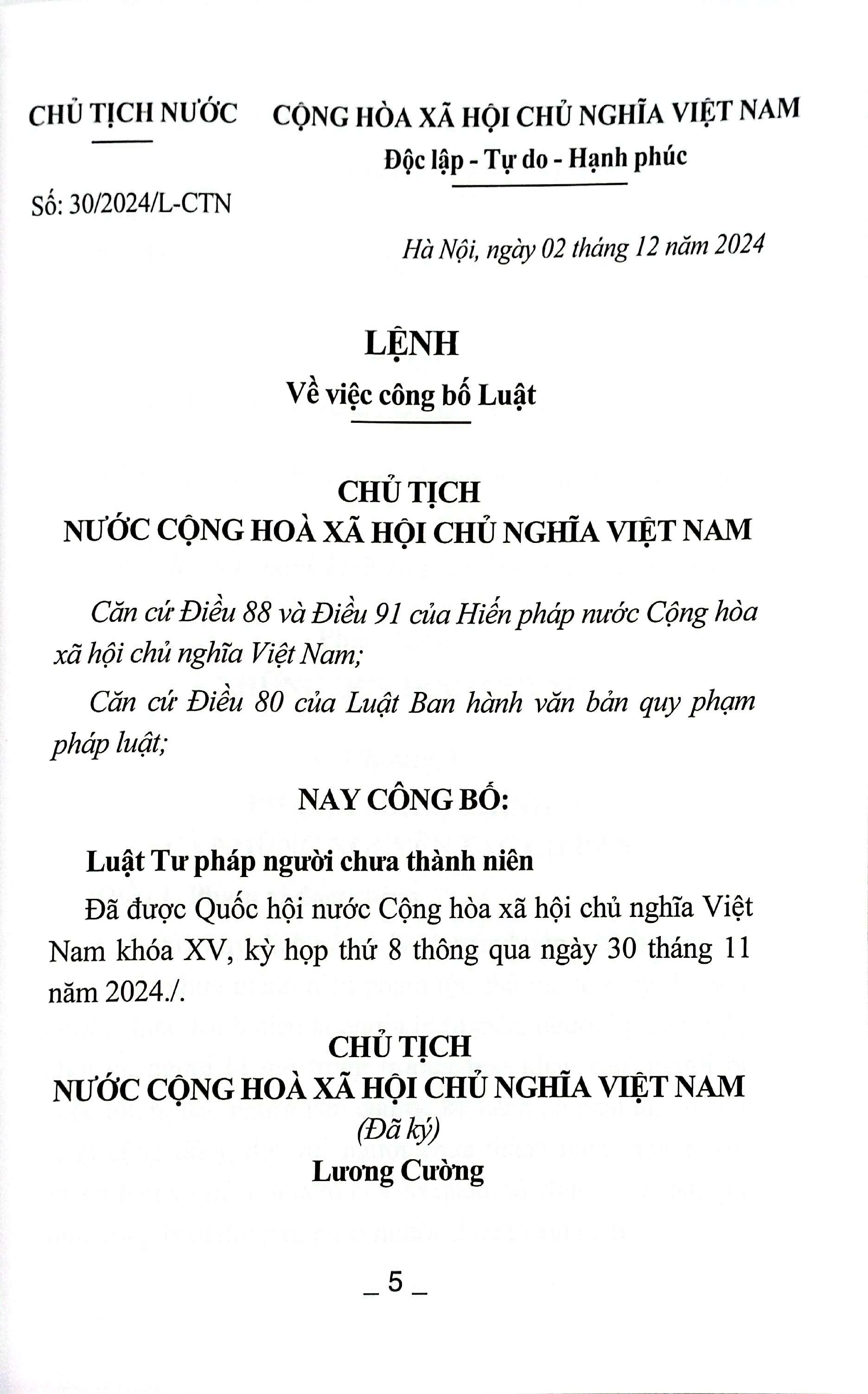 Luật Tư Pháp Người Chưa Thành Niên Ngày 30/11/2024, Quốc hội đã thông qua Luật Tư pháp người chưa thành niên số 59/2024/QH15. Theo đó, Luật có một số nội dung đáng chú ý: 12