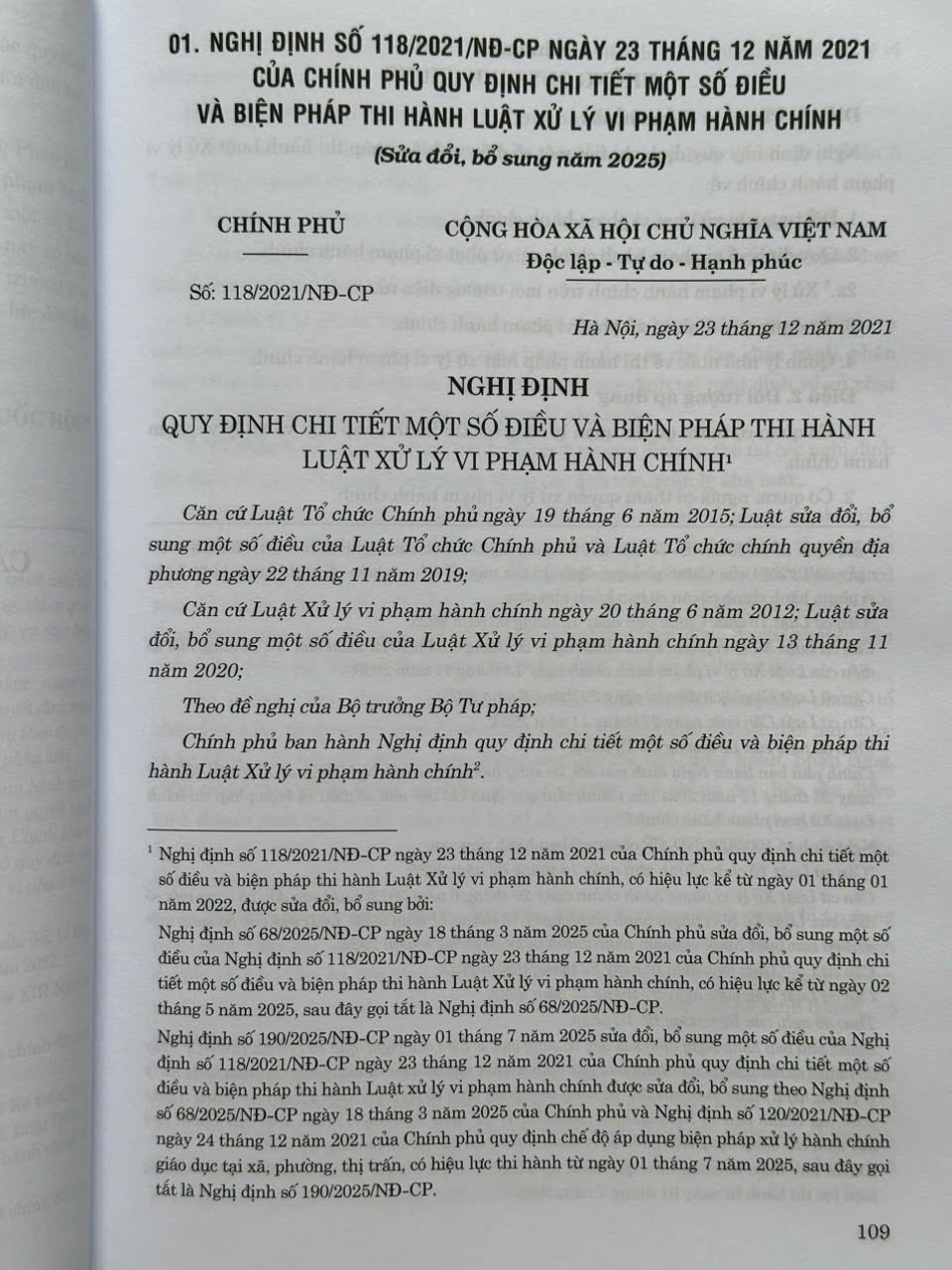 1. Hướng Dẫn Thi Hành Luật Xử Lý Vi Phạm Hành Chính & Các Quy Định Xử Phạt Vi Phạm Hành Chính Mới Nhất Ngày 23/12/2021, Chính phủ ban hành Nghị định số 118/2021/NĐ-CP Quy định