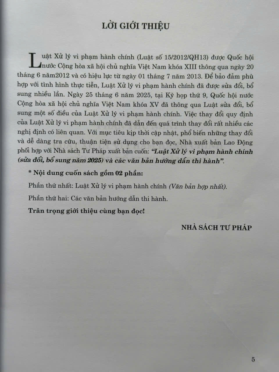 Nhằm phổ biến đến Quý Cơ quan, Đơn vị và Quý khách hàng thân thiết nắm bắt kịp thời những quy định mới nêu trên. Nhà sách Nam Việt xin trân trọng giới thiệu cuốn sách: Luật Xử Lý Vi Phạm Hành Chính (sửa đổi, bổ sung năm 2025) và Các Văn Bản Hướng Dẫn Thi Hành