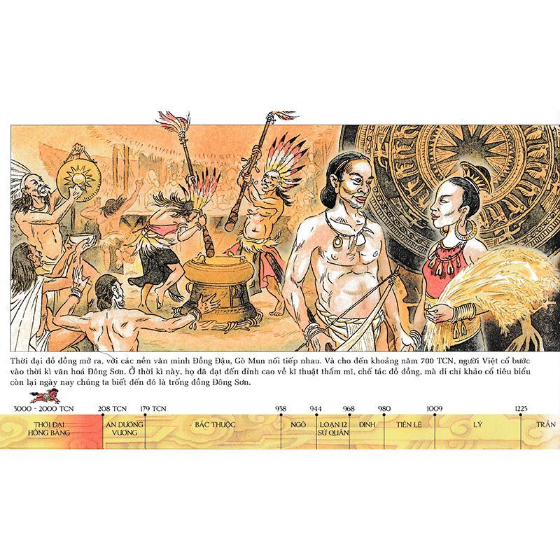 "Lược sử nước Việt bằng tranh" - đúng như tên gọi, khi đọc cuốn sách, bạn sẽ được đắm mình trong dòng sử Việt trôi xuôi từ thượng nguồn lịch sử, thuở cha Lạc Long Quân kết duyên cùng mẹ Âu Cơ, những dấu chân cha ông từ ngày mở nước, cho tới những mốc son của thời hiện đại.