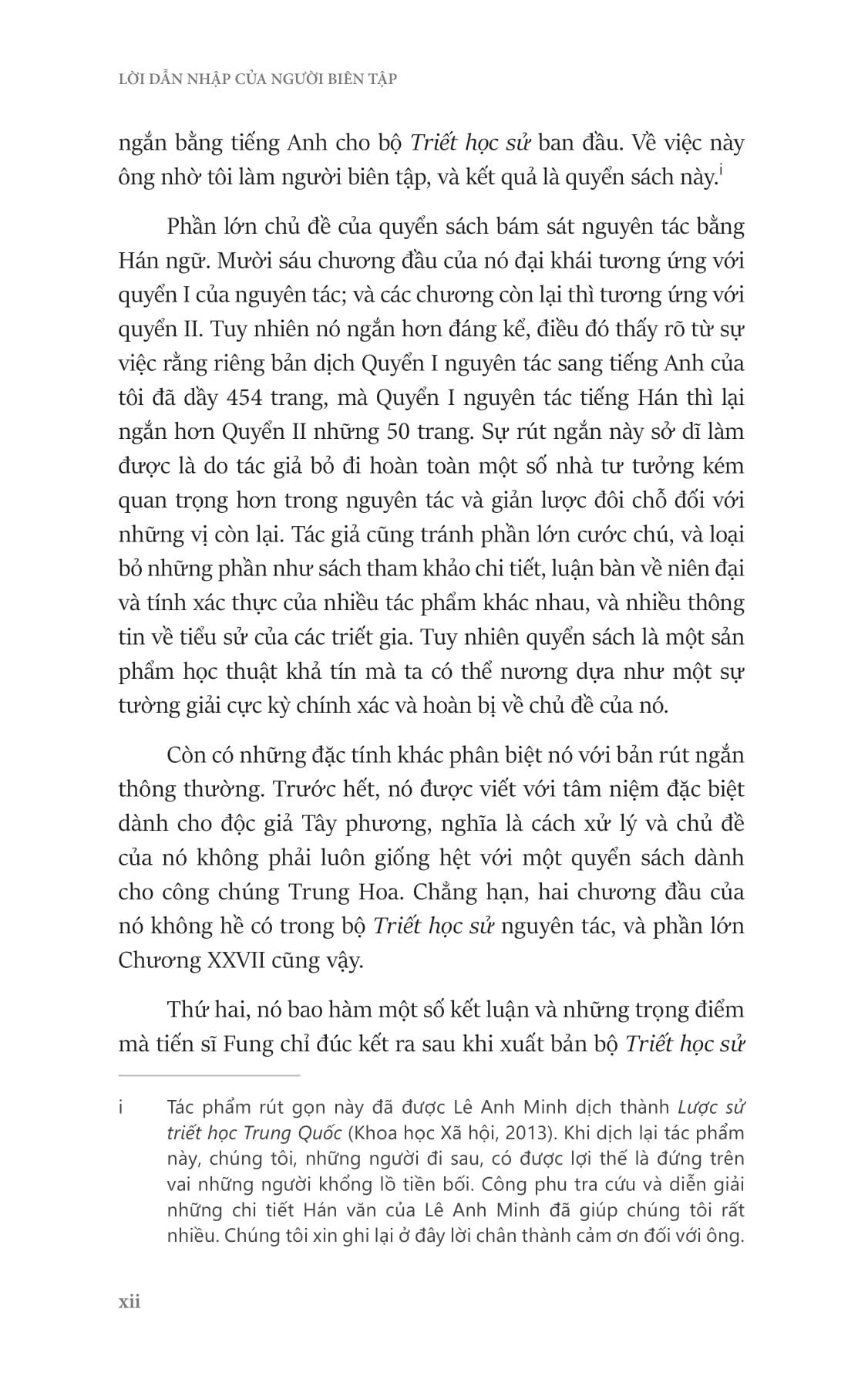 Phiên bản này của Lịch sử Triết học Trung Hoa của Fung Yu-lan (Phùng Hữu Lan) giúp những người yêu thích triết học và nghiên cứu về châu Á ở mọi trình độ có cái nhìn sâu sắc về hệ tư tưởng và triết học Trung Hoa từ cổ đại đến hiện đại.