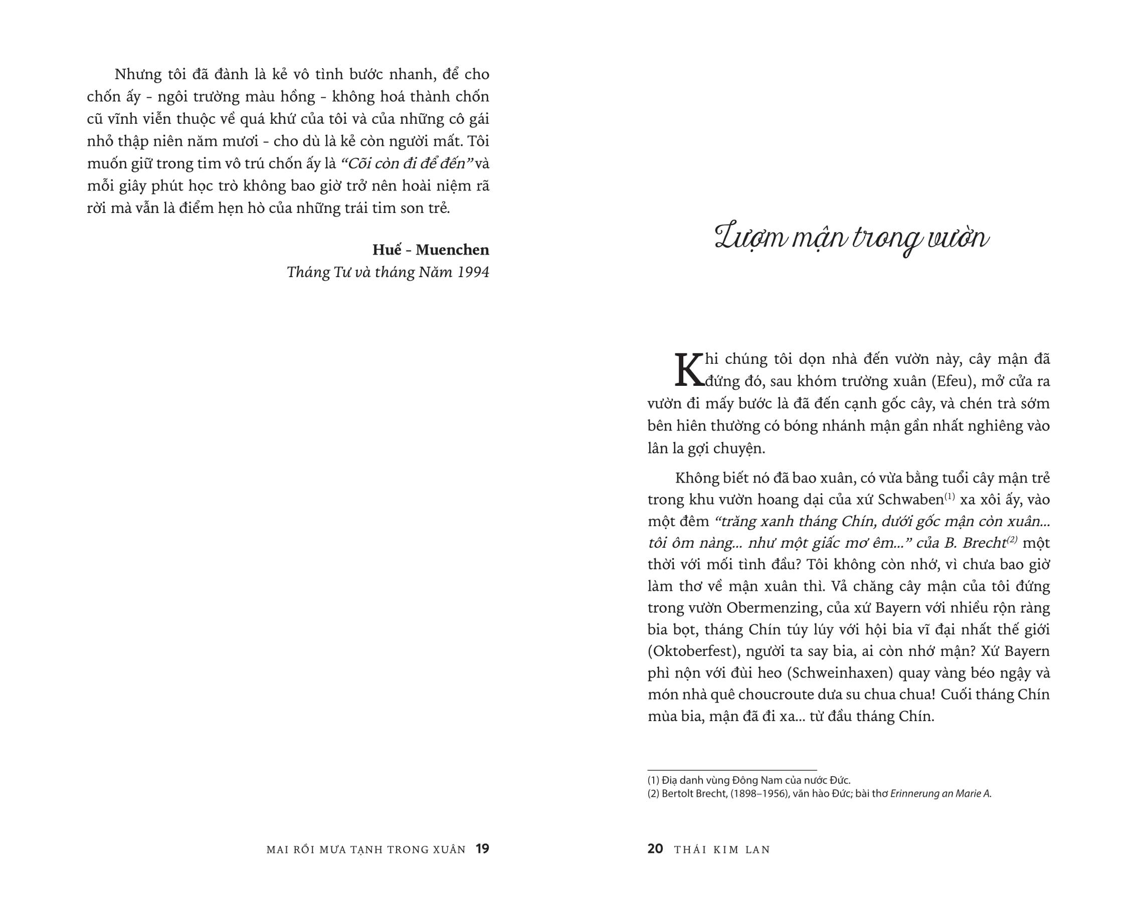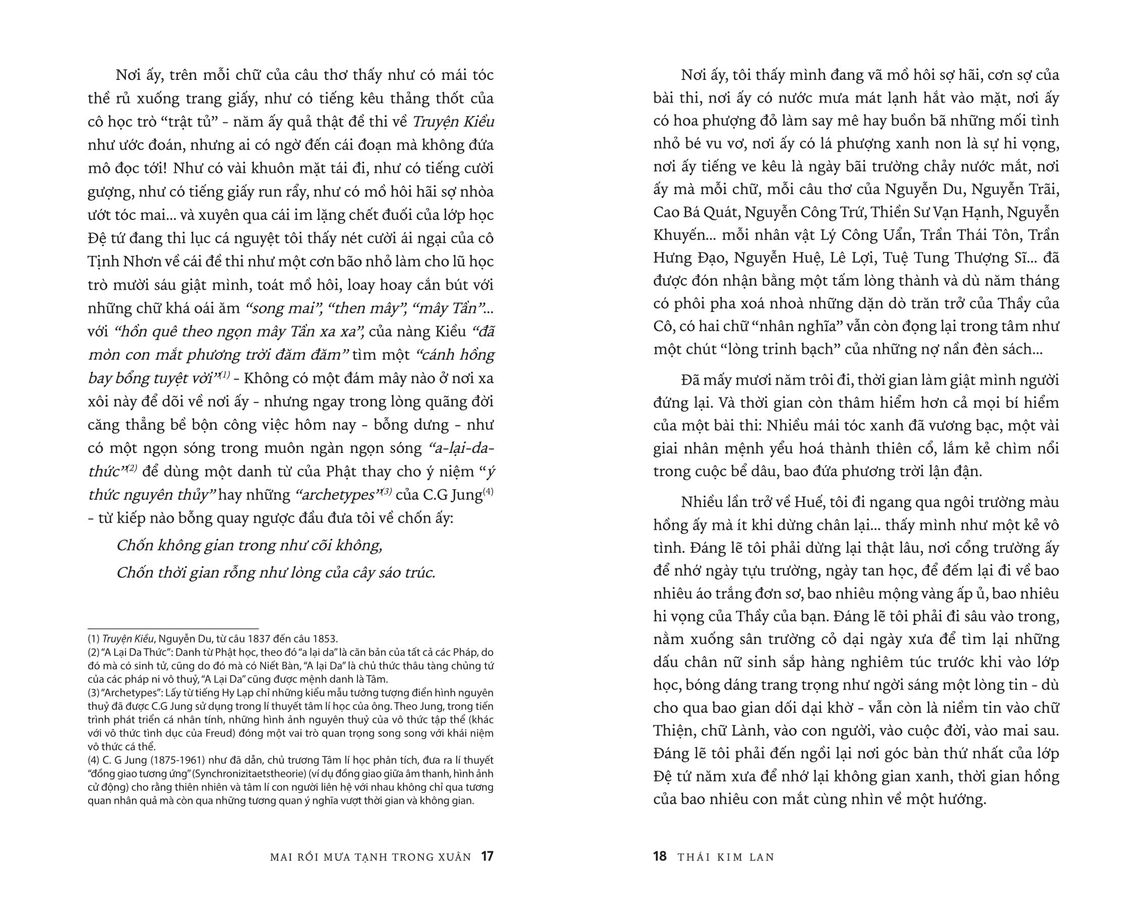 Lần bước theo cảm xúc trong tản văn Thái Kim Lan, người đọc sẽ cùng Tác giả vào Đường Sương, qua Đường Mưa để dần ngộ ra giữa chốn nhung nhớ ảo huyền ấy một MAI RỒI MƯA TẠNH TRONG XUÂN...