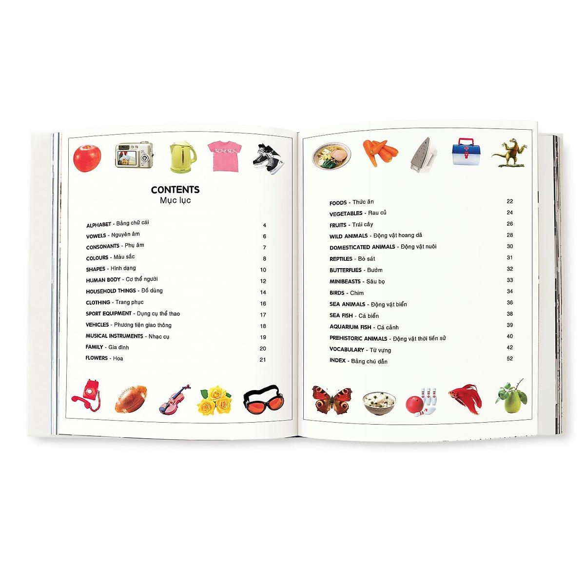 Đây là cuốn song ngữ Anh - Việt vô cùng bổ ích dành cho các bé từ 2 đến 7 tuổi bắt đầu tập nói tiếng Anh. Bé sẽ được phát triển vốn từ tiếng Anh thông qua các chủ đề gần gũi như màu sắc, Hình dạng, Cơ thể hay các chủ đề mang tính khám phá như Động vật biển, Động vật hoang dã và Khủng long… Không những thế, chọn lựa phương pháp chuyển tải thú vị, cuốn sách mở ra cho các em một thế giới hình ảnh sinh động và đầy màu sắc, giúp bé tiếp thu kiến thức và ghi nhớ dễ dàng hơn.