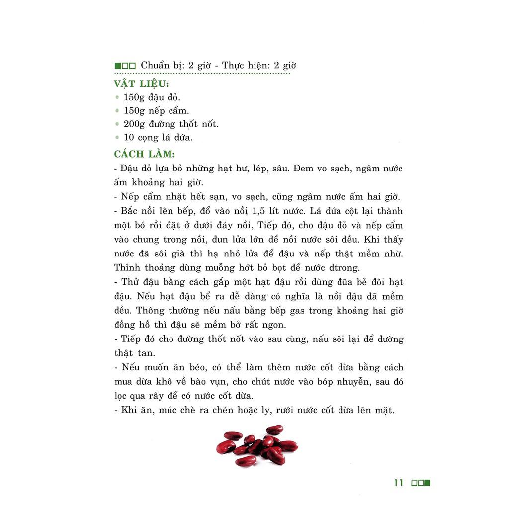 Ẩm thực Nam Bộ vốn được yêu thích bởi sự dân dã, nguyên liệu gần gũi dễ tìm nhưng hương vị thì tuyệt ngon. Cuốn sách hướng dẫn cách chế biến 62 món chè thơm ngon, thanh mát, giải nhiệt trong ngày hè: Thạch đậu đỏ, thanh long, trứng cút, nấm tuyết bí đỏ, sakê lá dứ Bạn hãy trổ tài vào bếp để chiêu đãi gia đình và những người thân yêu của mình nhé!
