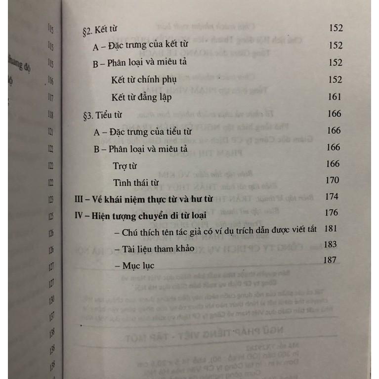 Mua tại TiktokNội dung gồm có: Phần một. Cấu tạo từ Phần hai. Từ loại tiếng Việt Phần ba. Cụm từ Chương I. Khái quát về cũng từ Chương II. Cụm danh từ Chương III. Cụm động từ Chương IV. Cụm tính từ Phần bốn. Câu Chương I. Câu đơn Chương II. Câu ghép Chương III. Câu phân loại theo mục đích nói Chương IV. Câu phủ định Tác giả: Diệp Quang Ban, Hoàng Văn Trung Số trang: 192+260 Xuất bản: 2025 Nhà xuất bản: Giáo dục Việt Nam Công ty phát hành: Nxb Giáo dục Việt Nam NTBOOKS Chắp cánh tri thức - Vững bước tương lai