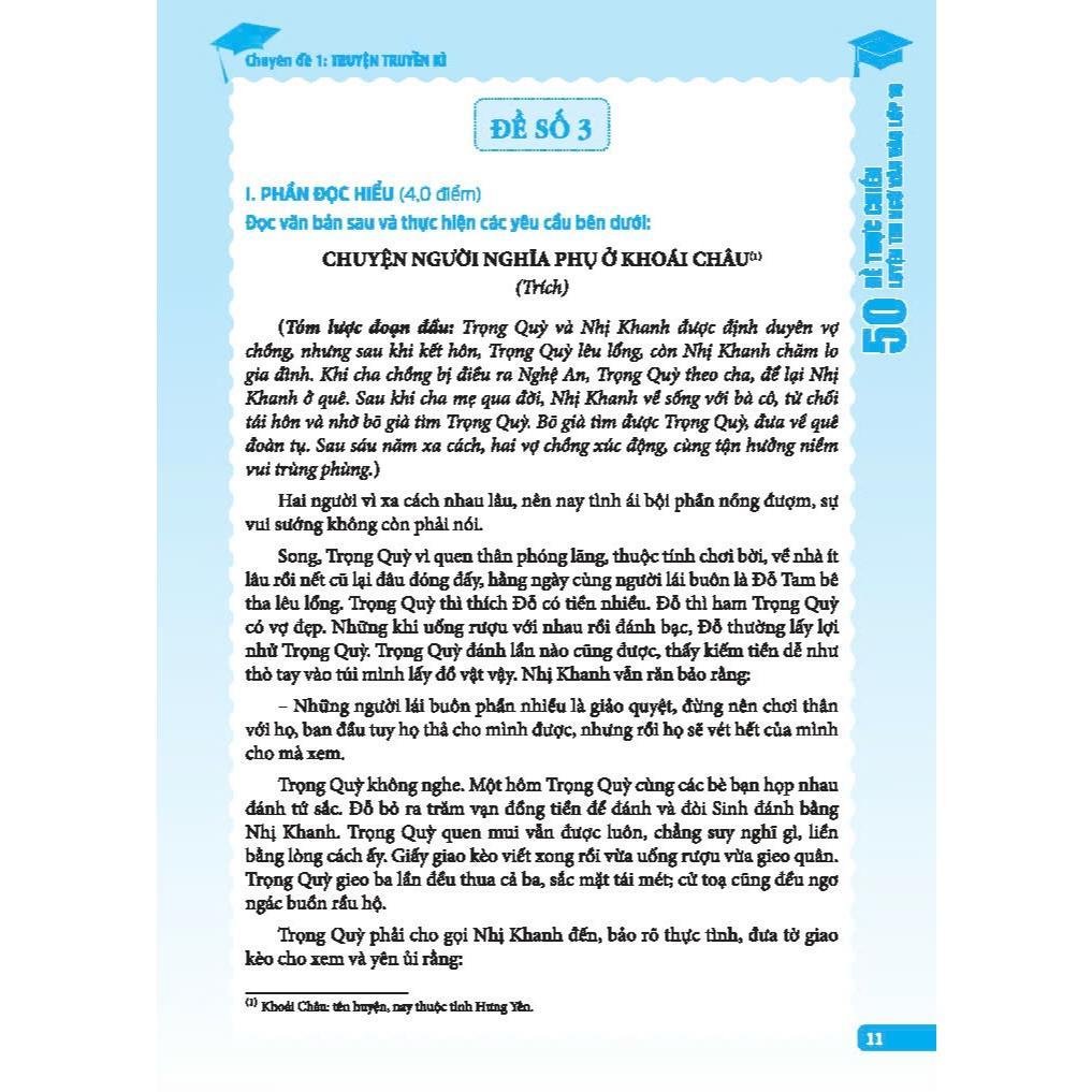 Kì thi vào lớp 10 – cột mốc quan trọng đầu tiên trên hành trình học tập – không chỉ đòi hỏi kiến thức vững vàng mà còn cần sự chuẩn bị có định hướng, sát thực tế. Cuốn sách “50 Đế thực chiến luyện thi Ngữ văn vào lớp 10" được biên soạn với mục tiêu hỗ trợ học sinh chủ động ôn tập, rèn luyện kĩ năng và tự tin bước vào kì thi.