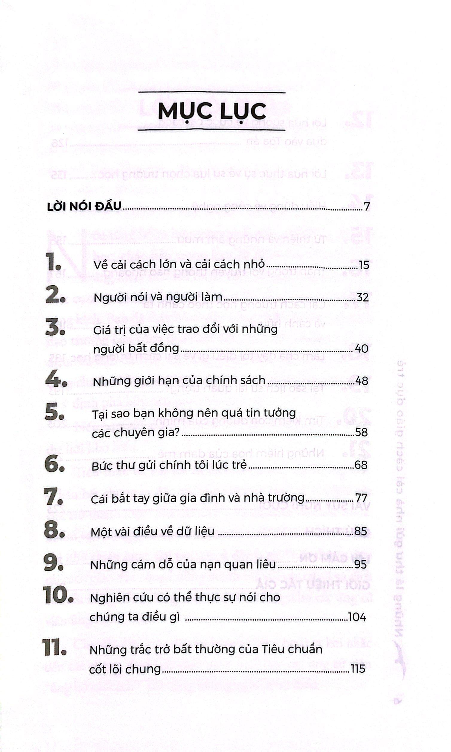 Lấy cảm hứng từ các cuộc trao đổi và quá trình làm việc với những nhà cải cách giáo dục trẻ tương lai trong nhiều năm hoạt động ở lĩnh vực này, cuốn sách là một số suy nghĩ của tác giả về thực trạng của cải cách giáo dục cũng như những “lời khuyên” dành cho người trong cuộc. Theo chia sẻ của người viết, cuốn sách nhằm hỗ trợ những nhà cải cách gặp “một số tình huống khó xử chung” như tính chính trị trong cải cách, việc làm thế nào để các chính sách hoạt động như dự kiến, hay việc mất kiên nhẫn trước những phản đối hoặc trở ngại… Độc giả có thể không tìm thấy những lời khuyên cụ thể về chính sách nào là nên thực hiện hay thực hiện ra sao, nhưng các phân tích của tác giả sẽ giúp khai thông về cách tư duy, cách tiếp cận chung, vốn cần thiết cho bất cứ nhà cải cách trong bất kỳ lĩnh vực nào.