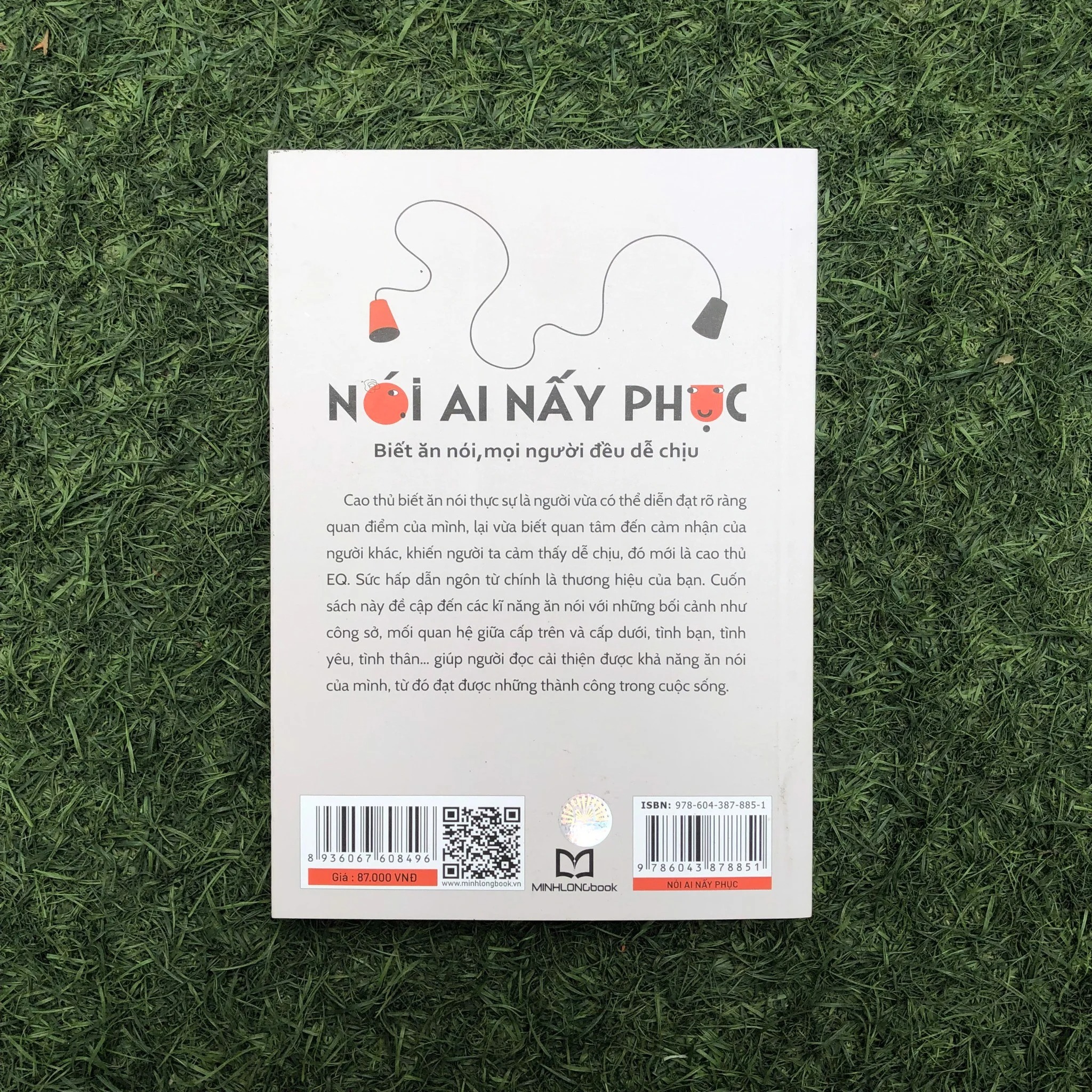 Sách: Nói Ai Nấy Phục Bạn có nói chuyện dễ chịu hay không sẽ quyết định thái độ của người khác đối với bạn. Đối phương chắc chắn sẽ không tay bắt mặt mừng nếu bạn tỏ ra lạnh như băn, bạn thân thiện dễ gần đương nhiên người ta sẽ nói chuyện với bạn...